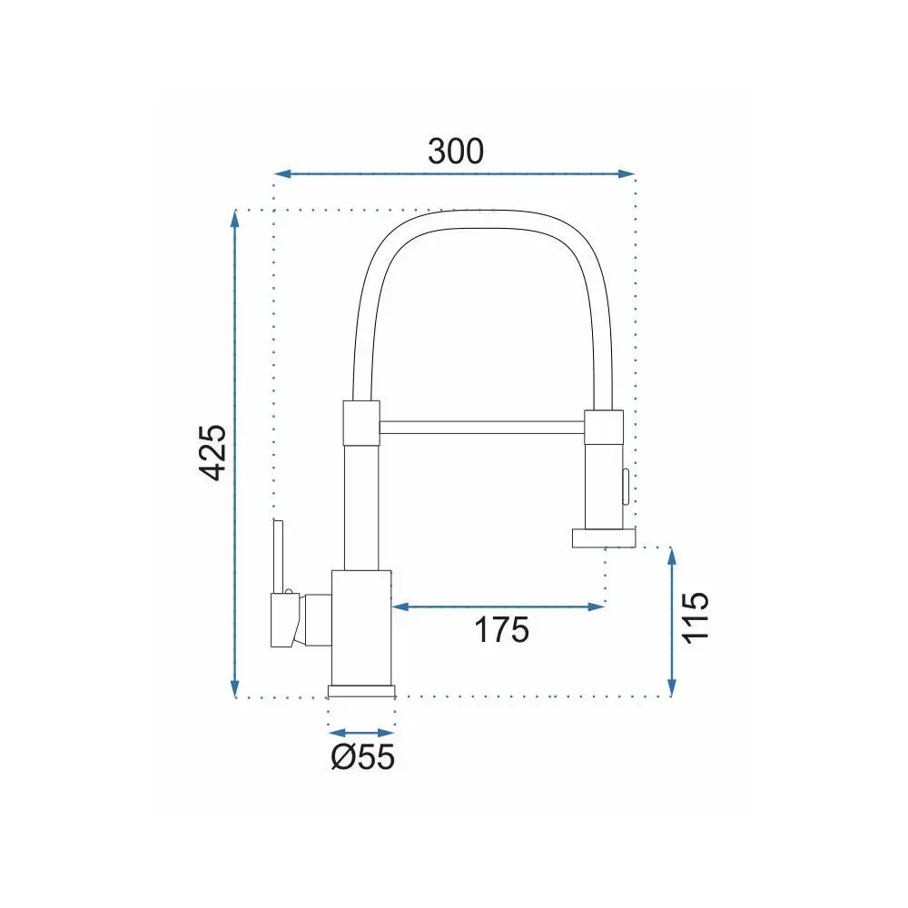 Model Colin to wysoka bateria z ruchomą wylewką i dwoma trybami strumienia, która ułatwia mycie naczyń i codzienne korzystanie ze zlewu.