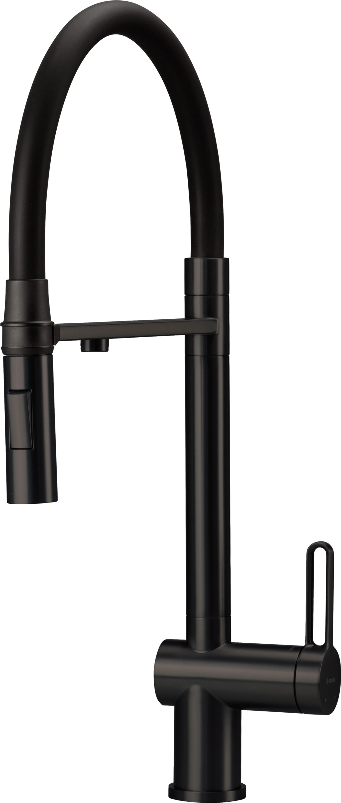Bateria kuchenna Magnetic to propozycja dla tych, którzy cenią sobie nowoczesność i wyrazisty charakter w kuchni. Wyposażona w elastyczną wylewkę z magnetycznym uchwytem, zapewnia maksymalną wygodę podczas użytkowania, pozwalając na szybkie i precyzyjne odkładanie wylewki na miejsce. Dzięki funkcji podłączenia do filtra wody użytkownik zyskuje dostęp do czystej, filtrowanej wody. 2-funkcyjna słuchawka z opcją strumienia deszczowego i napowietrzonego to kolejny atut, który czyni Magnetic baterią wszechstronną. Wykończenie w głębokim kolorze nero wprowadza do wnętrza nowoczesną elegancję, idealnie komponując się z kuchniami w stylu loftowym lub monochromatycznym. W połączeniu z magnetycznymi zlewozmywakami z tej samej serii tworzy imponujący zestaw.