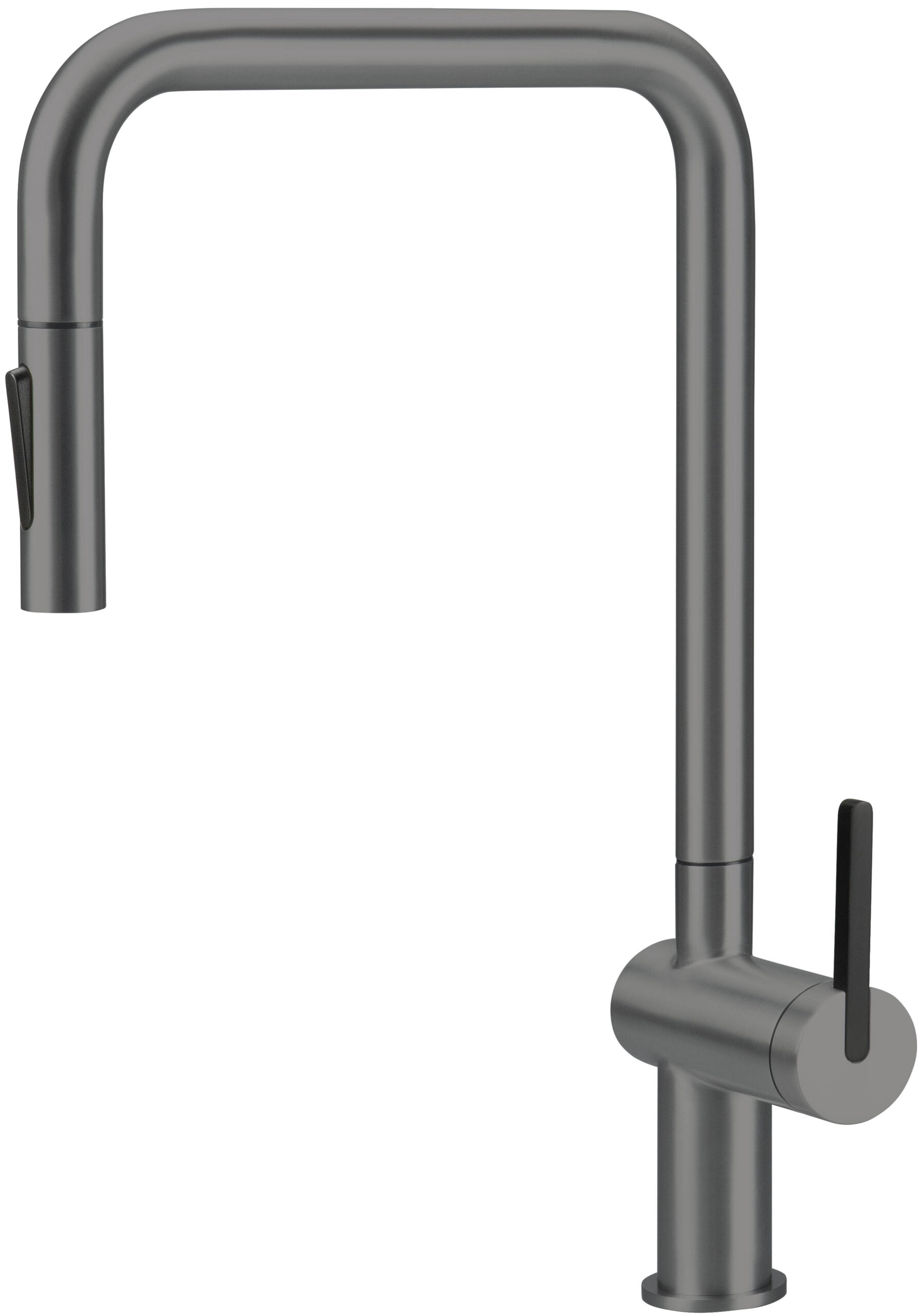 Bateria kuchenna Momi, wykonana z wysokiej jakości stali nierdzewnej, charakteryzuje się elegancką, prostokątną wylewką, która nadaje jej nowoczesny wygląd. Wbudowany aerator skutecznie napowietrza strumień wody, co przekłada się na mniejsze zużycie. Wyciągana wylewka gwarantuje komfortowe użytkowanie, umożliwiając łatwe operowanie wodą przy różnorodnych pracach w strefie zlewozmywaka. Bateria oferuje również dwa tryby strumienia: napowietrzony, idealny do codziennych zadań, oraz delikatny, deszczowy strumień, świetny do płukania warzyw i owoców. Momi, wykończona w eleganckim, matowym szczotkowanym brązie, stanowi doskonały wybór do nowoczesnych kuchni, idealnie komponując się z nowoczesnymi wnętrzami.