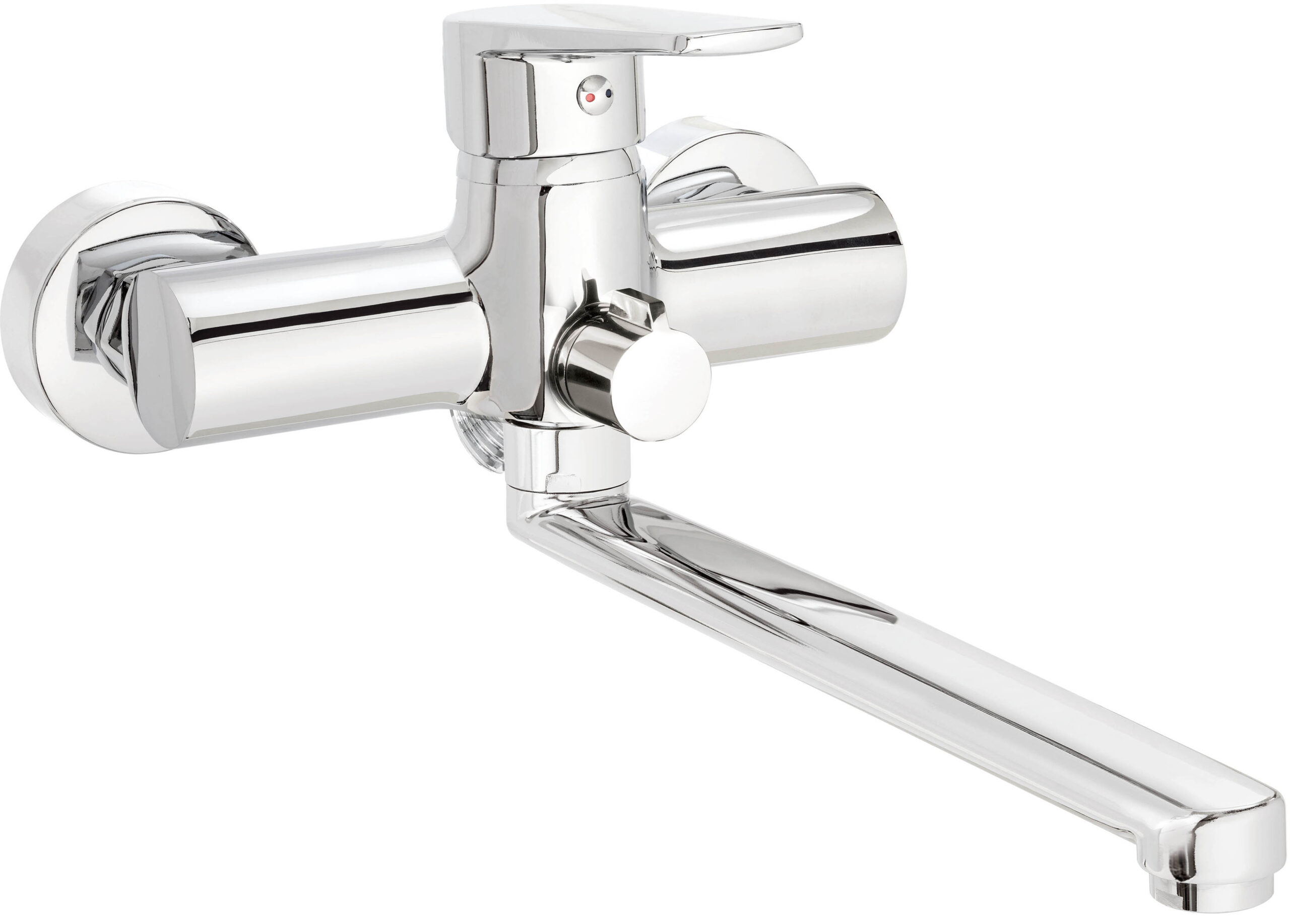 Bateria umywalkowo-wannowa ścienna z serii Tubo to solidnie wykonany produkt z wysokogatunkowego mosiądzu. Posiada aerator, który napowietrza strumień wody, co przyczynia się do ograniczenia jej zużycia. Ceramiczna głowica gwarantuje trwałość i niezawodność produktu. Ceramiczny mechaniczny przełącznik funkcji, pozwala na zmianę wypływu strumienia wody nawet przy niskim ciśnieniu. Ponadto, chromowe wykończenie sprawia, że bateria doskonale pasuje zarówno do aranżacji klasycznych, jak i nowoczesnych.