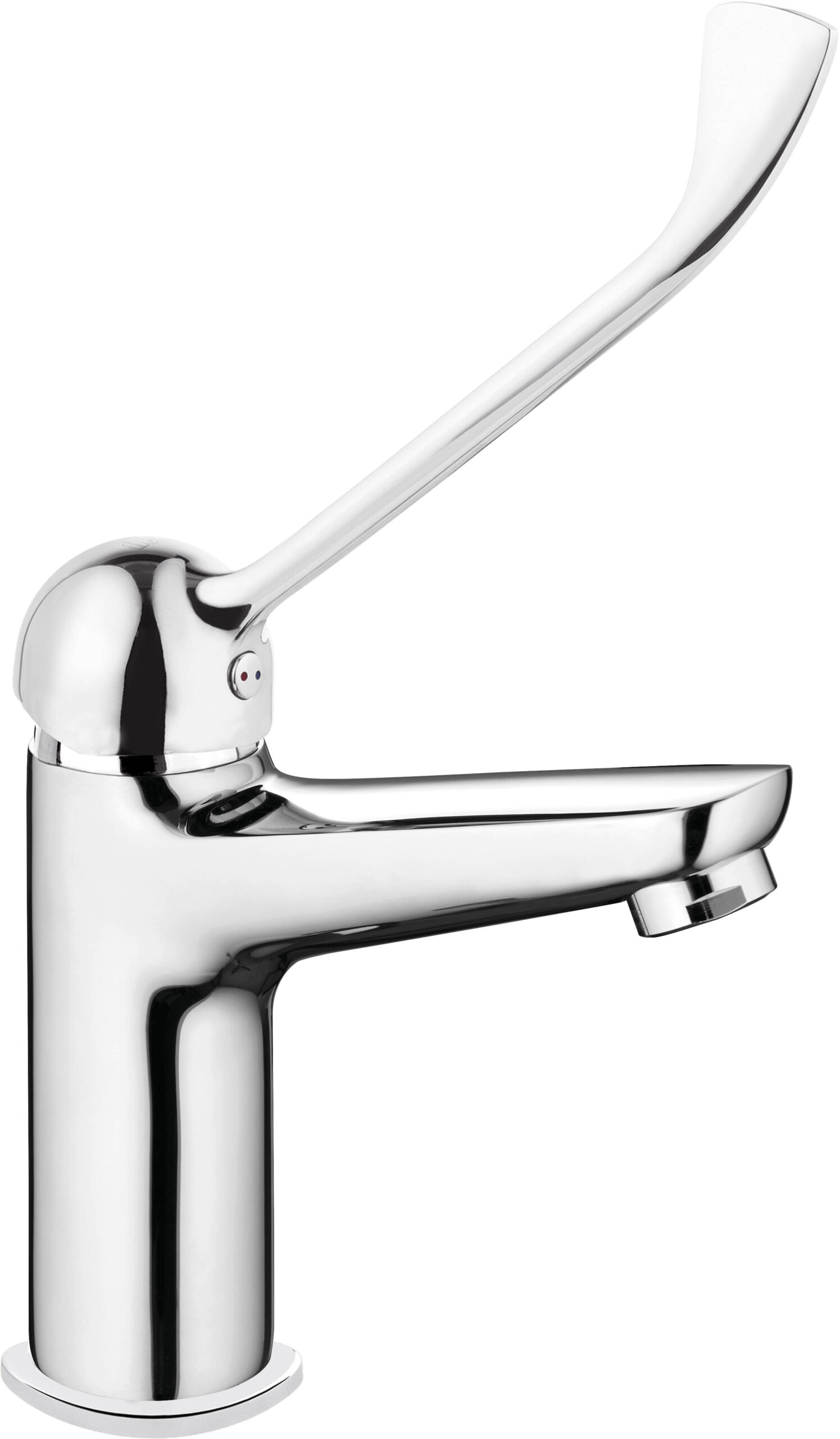 Bateria umywalkowa Boro wykonana z mosiądzu i wykończona błyszczącym chromem, wyróżnia się wydłużoną dźwignią clinic. Umożliwia ona obsługę nie tylko dłonią, ale także przedramieniem czy łokciem, co podnosi poziom higieny i sprawia, że bateria doskonale sprawdza się w klinikach, salonach kosmetycznych oraz gastronomii. Wbudowany aerator napowietrza strumień wody, redukując jej zużycie i zwiększając komfort. W zestawie znajdują się tuleja montażowa i wężyki przyłączeniowe, co ułatwia szybki i bezproblemowy montaż.