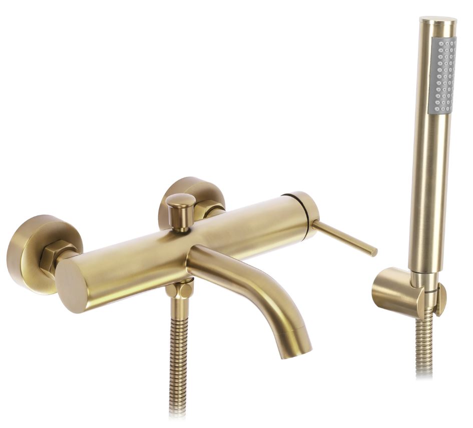 Funkcjonalna i nowoczesna bateria wannowa Spot w kolorze złota szczotkowanego to doskonałe połączenie elegancji i praktyczności. Produkt w efektowny sposób uzupełnia przestrzeń łazienki, zachowując nienaganny wygląd i estetykę wnętrza. Bateria jest przystosowana do montażu ściennego, dzięki czemu idealnie sprawdzi się zarówno w nowoczesnych, jak i klasycznych aranżacjach.