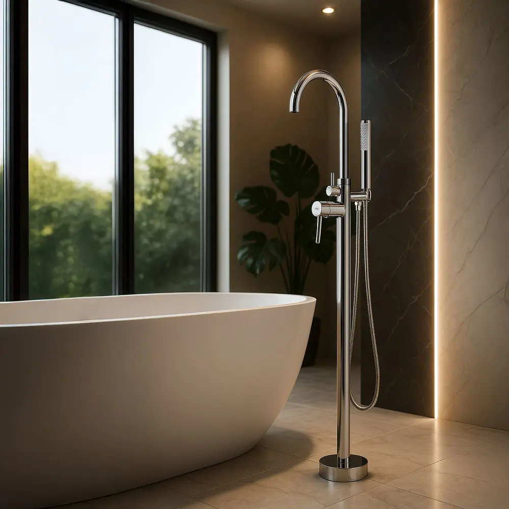 Bateria wannowa wolnostojąca Lungo w eleganckim kolorze chrom połysk, to doskonały wybór dla osób poszukujących funkcjonalnego i designerskiego rozwiązania do nowoczesnych łazienek. Jej minimalistyczna forma oraz wysoka jakość wykonania sprawiają, że idealnie komponuje się z wolnostojącymi wannami, podkreślając styl całej aranżacji.