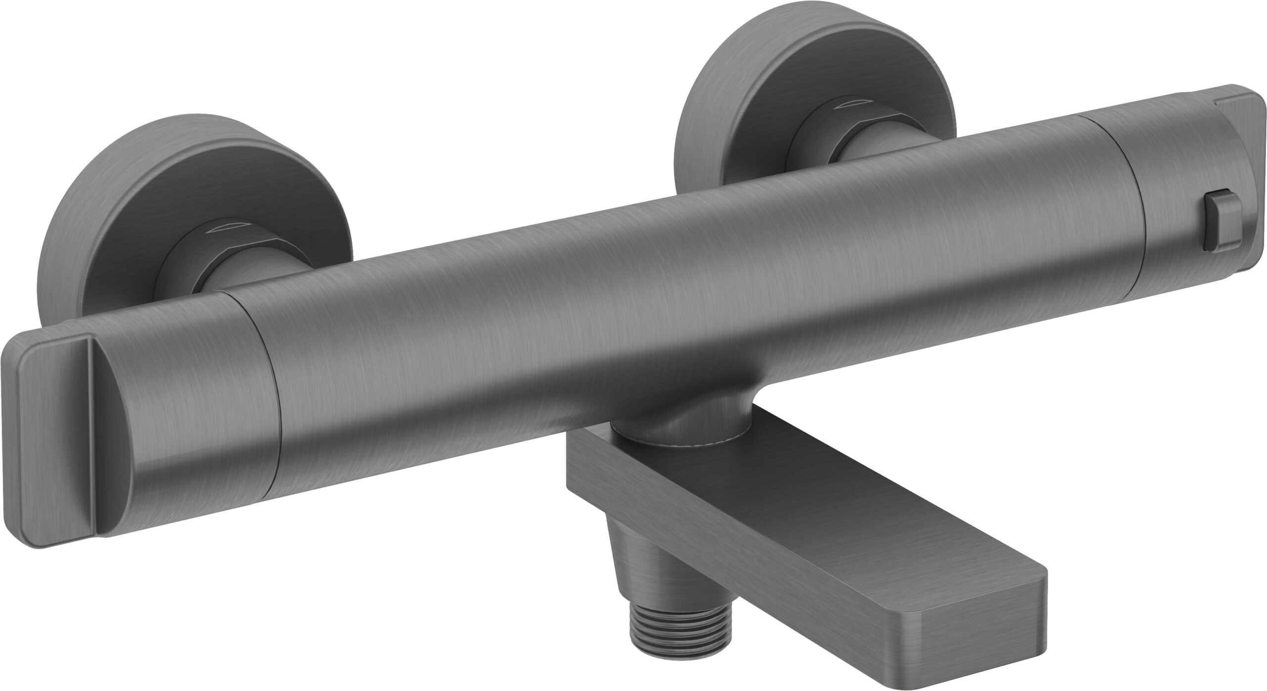 Bateria termostatyczna wykonana jest z najwyższej klasy mosiądzu. Składana wylewka poprawia komfort kąpieli w wannie i jednocześnie pełni funkcje przełącznika strumienia między baterią a słuchawką. Produkt wyposażony został w blokadę temperatury 38˚ C, która zapobiega poparzeniom. Ponadto bateria termostatyczna posiada wyjątkowo ergonomiczne uchwyty, gwarantujące poręczną regulację strumienia wody. Jest to model zaprojektowany przez Katarzynę Łogwinienko, łączący wyjątkowy design z funkcjonalnością. Bateria wykończona jest w intrygującym kolorze Titanium, który stanowi kompromis między szarością, czernią a subtelnym odcieniem brązu.
