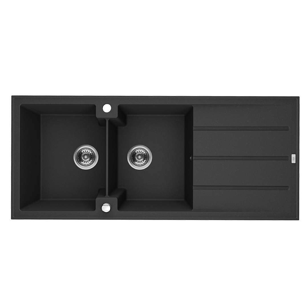 W serii dostępny jest funkcjonalny model z dwoma przestronnymi komorami i pełnowymiarowym ociekaczem. To przemyślana propozycja dla tych, którzy cenią wygodę pracy w kuchni – pozwala jednocześnie myć, płukać i sortować naczynia, co sprawdza się zwłaszcza w większych gospodarstwach domowych. Ociekacz z profilowanymi rowkami sprawnie odprowadza wodę, ułatwiając utrzymanie czystości.