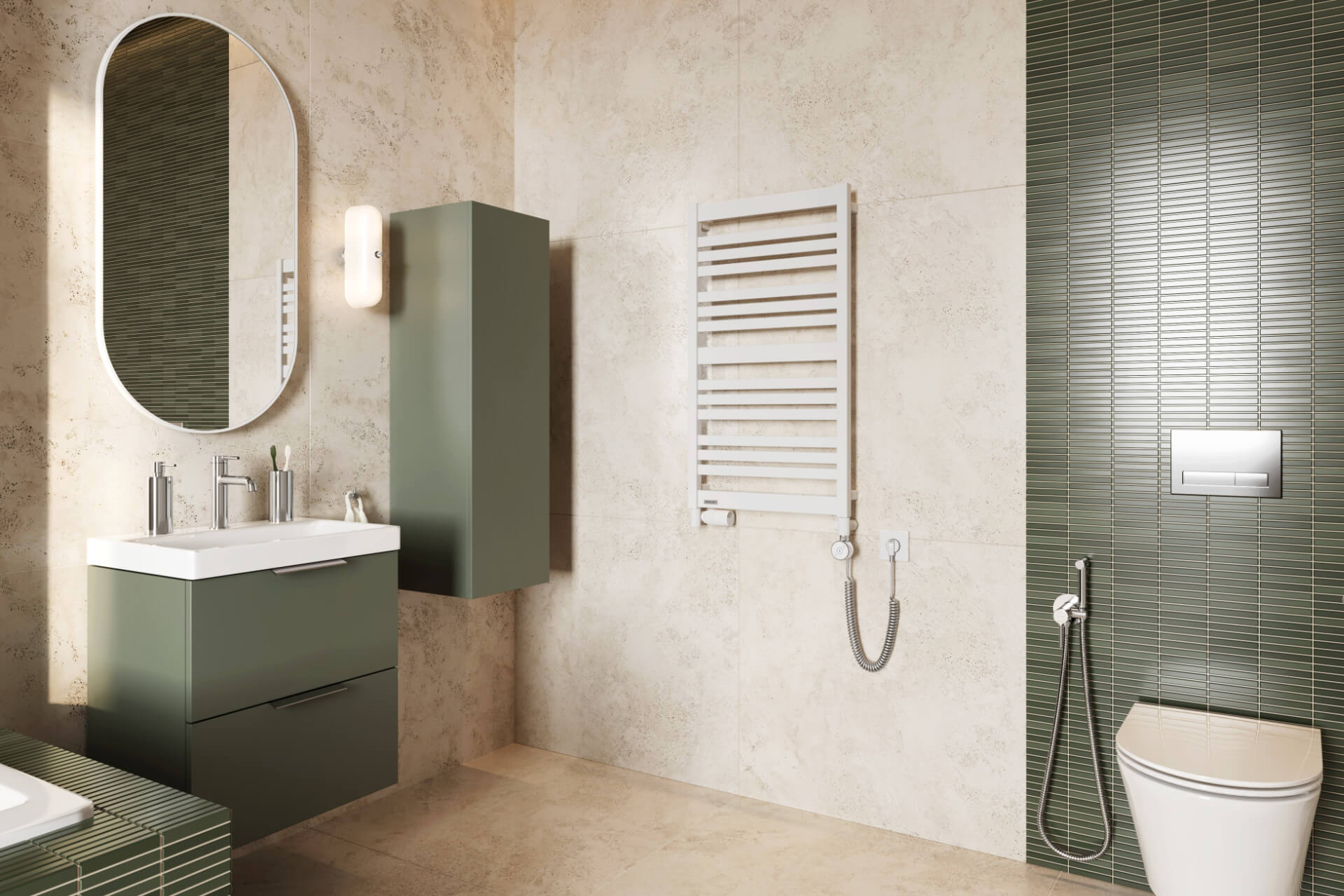 Grzejnik został wyposażony w zestaw otworów, pozwalających na podłączenie go zarówno w wersji dolnej centralnej (50 mm w osi dla zestawów zaworów zintegrowanych), jak i dolnej skrajnej na kolektorach (470 mm). Grzejnik ten wyposażony w grzałkę elektryczną, sprawdzi się doskonale jako całoroczna suszarka na ręczniki, zapewniająca ogrzewanie pomieszczenia i możliwość suszenia tekstyliów nawet poza sezonem grzewczym.
