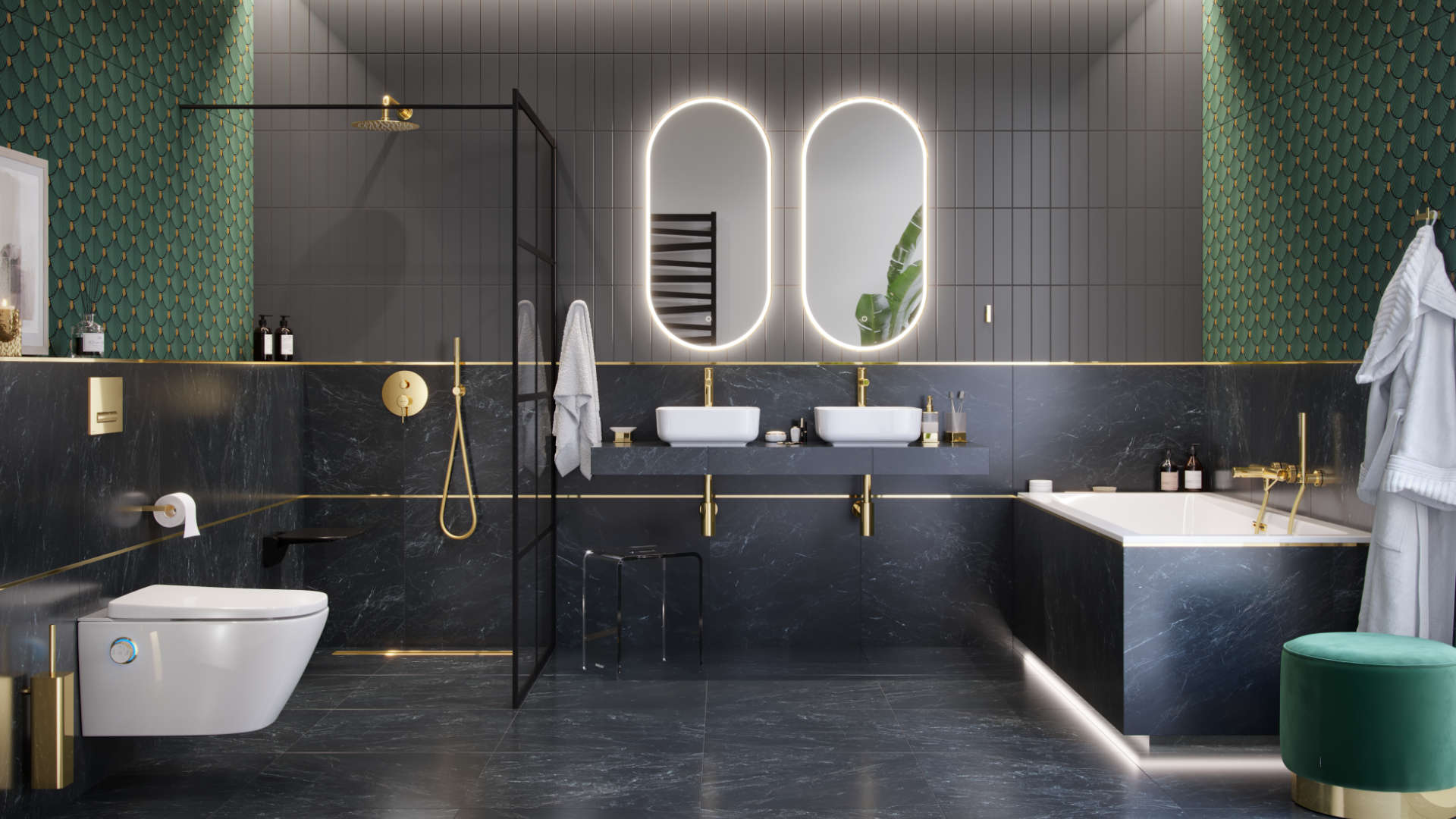 chrom, czarny mat, biały mat, złoty połysk, złoty szczotkowany, miedziany szczotkowany oraz grafit szczotkowany.