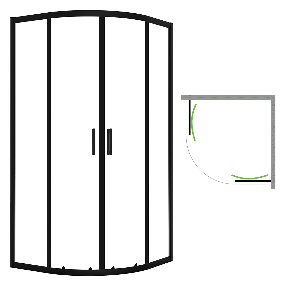 Oba rodzaje kabin prysznicowych Bresso – zarówno kabina półokrągła, jak i kabina kwadratowa – dostępne są w wersji chromowej oraz czarnej.