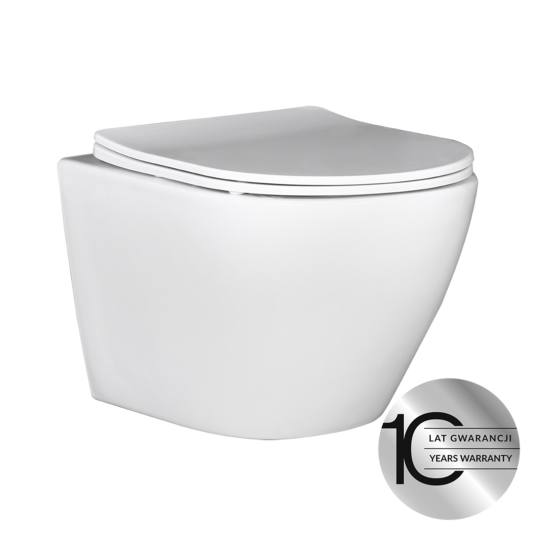 Produkt nie posiada kołnierza (jest to miska bezrantowa) co pozwala na znacznie łatwiejsze utrzymanie czystości. Kolejnym atutem miski jest jej ponadczasowy wygląd.