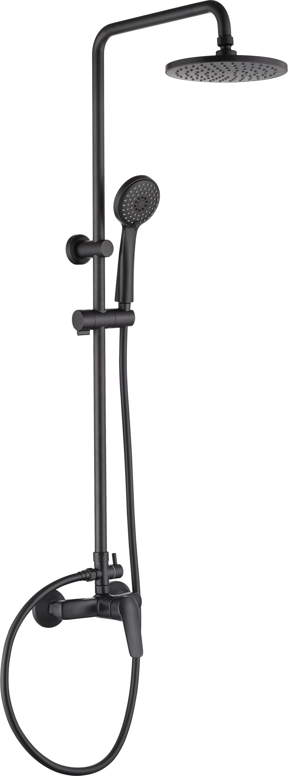 Deszczownia Neo Boro składa się z mosiężnej baterii mieszaczowej, deszczownicy i drążka ze stali nierdzewnej oraz słuchawki wraz z wężem. Głowica i słuchawka wyposażone są w system anti-calc ułatwiający usuwanie osadu kamiennego. Słuchawka posiada 3 strumienie: deszczowy, hydromasaż i mieszany. Cały zestaw wykończony jest w eleganckim czarnym macie.