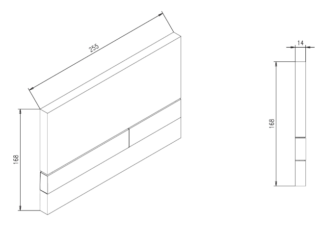 wysokość 168 mm, szerokość 255 mm, głębokość 14 mm