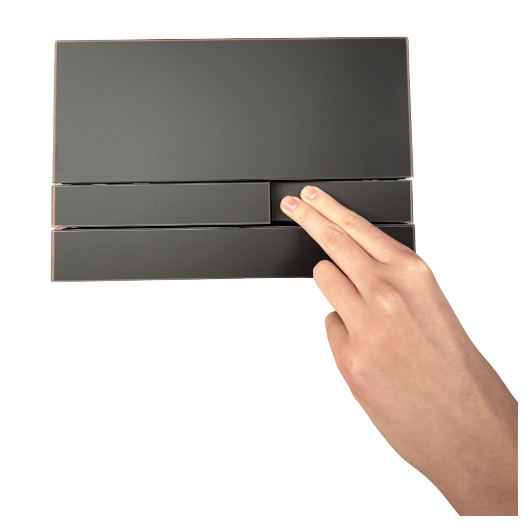 Nowoczesny, elegancki i idealnie wpisujący się w trendy minimalistycznych łazienek. Przycisk spłukujący Werit Exclusive 2.1 w wykończeniu czarne szkło mat z ramką w tym samym odcieniu to propozycja dla osób, które cenią spójny i luksusowy wygląd wnętrza. Matowe szkło nadaje panelowi wyjątkowej głębi, a czarna ramka tworzy wyraźny, designerski kontur.