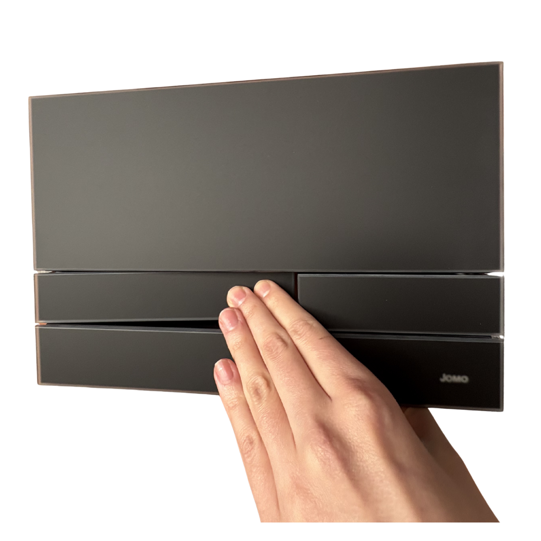 Model przeznaczony jest do spłuczek podtynkowych JOMOTech z serii SLK. Przycisk oferuje dwuilościowe spłukiwanie, które pozwala wygodnie zarządzać zużyciem wody. Płyta przyciskowa wykonana została z trwałego tworzywa ABS, a front wykończono eleganckim, matowym szkłem.