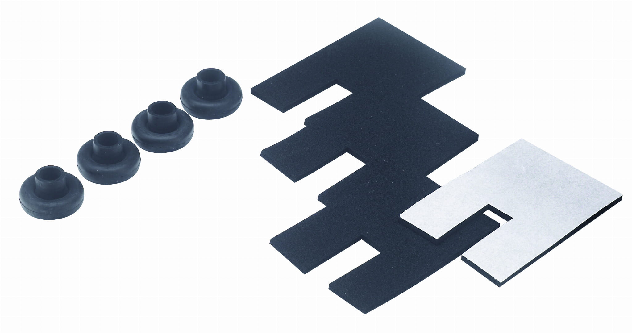 W zestawie znajdują się 4 podkładki izolacyjne do płytek montażowych oraz 4 podkładki izolacyjne do śrub, które skutecznie redukują przenoszenie dźwięków i naprężeń podczas użytkowania urządzeń sanitarnych.