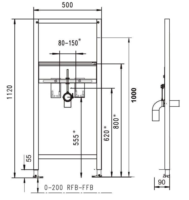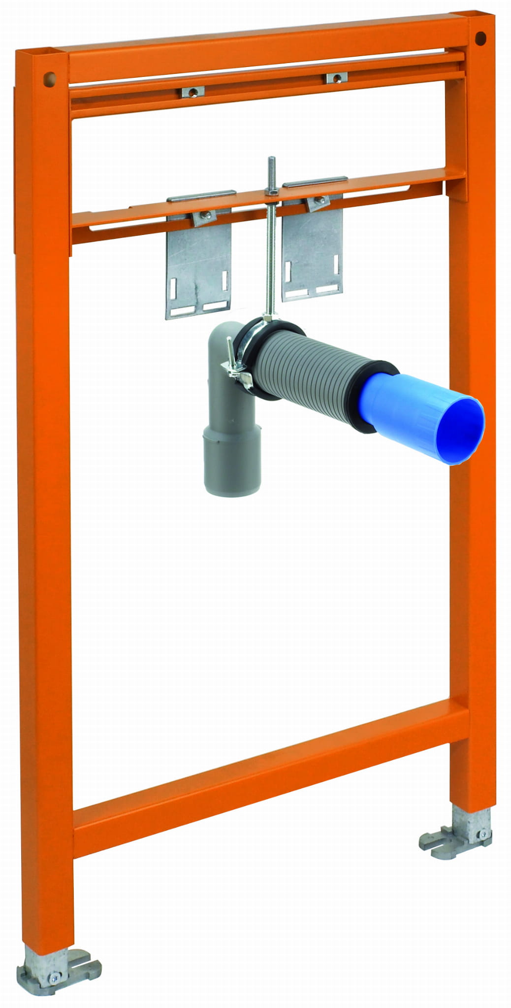 Rama wykonana jest ze stali lakierowanej proszkowo i wyposażona w uchwyt podłogowy. Regulacja wysokości w zakresie 0–200 mm (podłoga surowa – podłoga gotowa) pozwala na łatwe dopasowanie podczas montażu. Stelaż posiada płytę do mocowania umywalki bez przyłączy armatury.