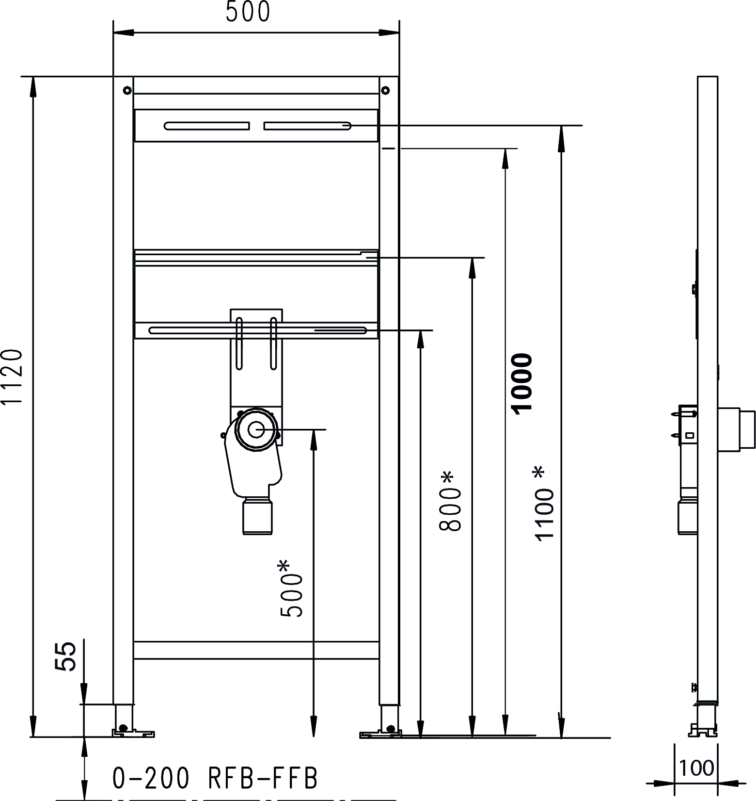 JOMO/WERIT JOMOTech STELAŻ WC H=1120 / SZEROKOŚĆ 450 / DN90 / REDUKCJA 90/110