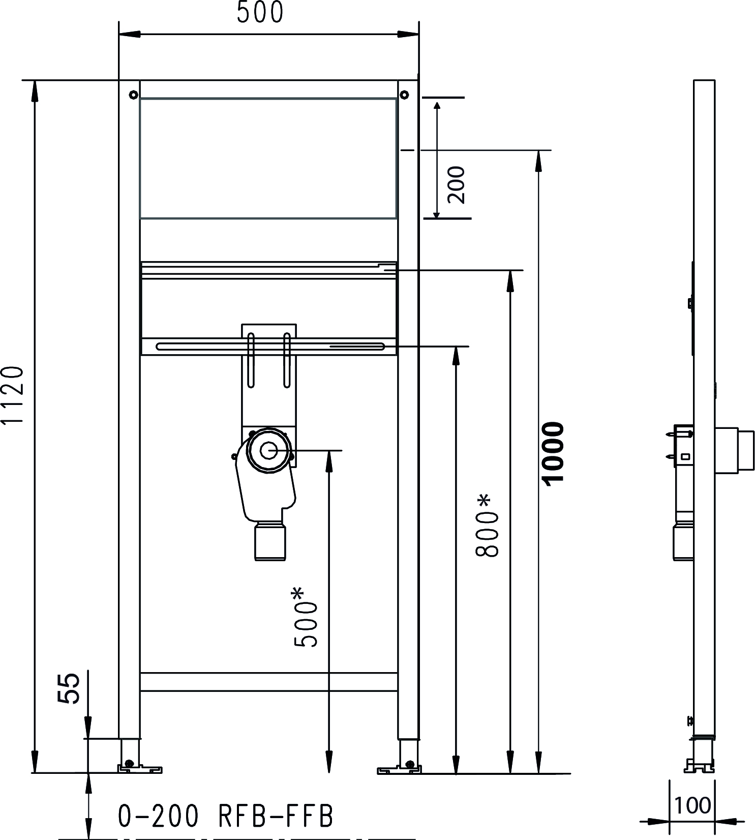 JOMO/WERIT JOMOTech STELAŻ WC H=1120 / SZEROKOŚĆ 450 / DN90 / REDUKCJA 90/110