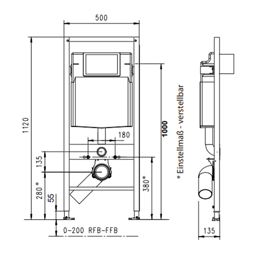 JOMO/WERIT JOMOTech STELAŻ WC H=1120 / SZEROKOŚĆ 450 / DN90 / REDUKCJA 90/110