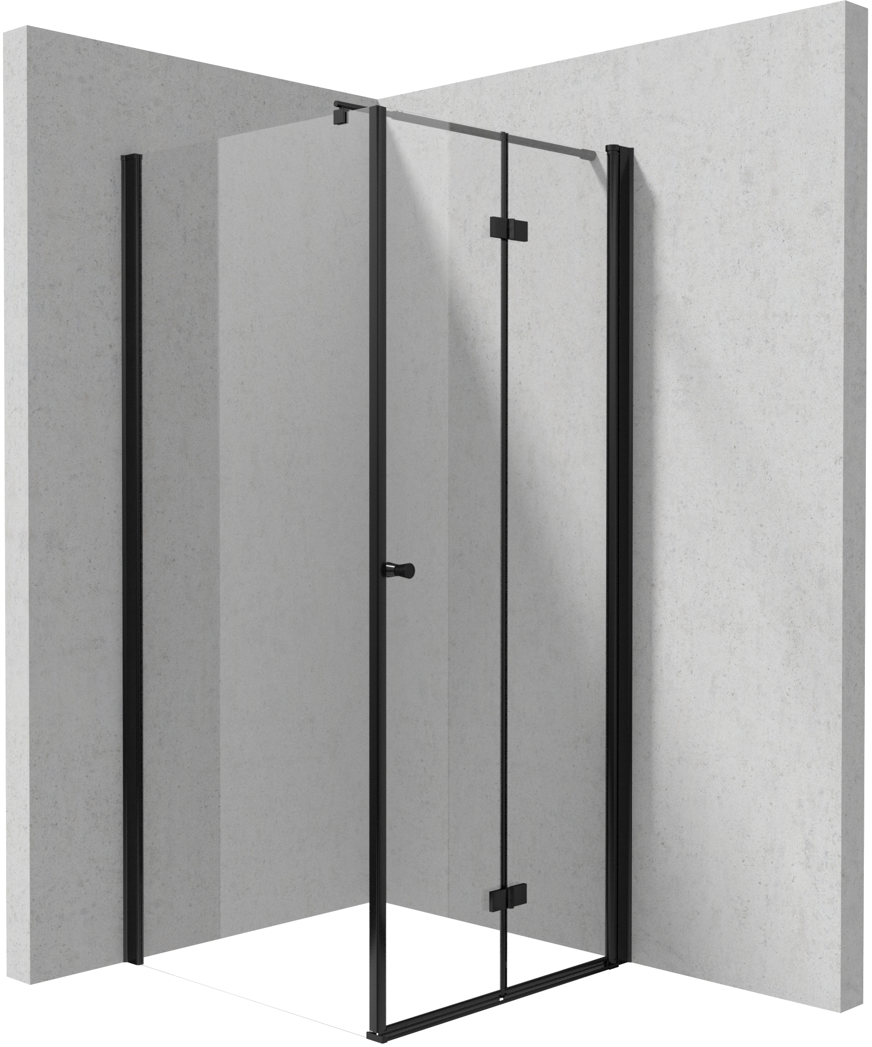 Kabina prysznicowa łączy funkcjonalność drzwi składanych i elegancję ścianki walk-in, tworząc nowoczesne i praktyczne rozwiązanie do łazienki. Wykonana z transparentnego szkła hartowanego Totalwhite, kabina została pokryta hydrofobową powłoką Active Cover, która ułatwia utrzymanie jej w czystości i zapewnia trwałość na lata. Matowe czarne wykończenie nadaje całości wyjątkowego stylu, harmonijnie współgrając z armaturą i akcesoriami w tym samym kolorze.