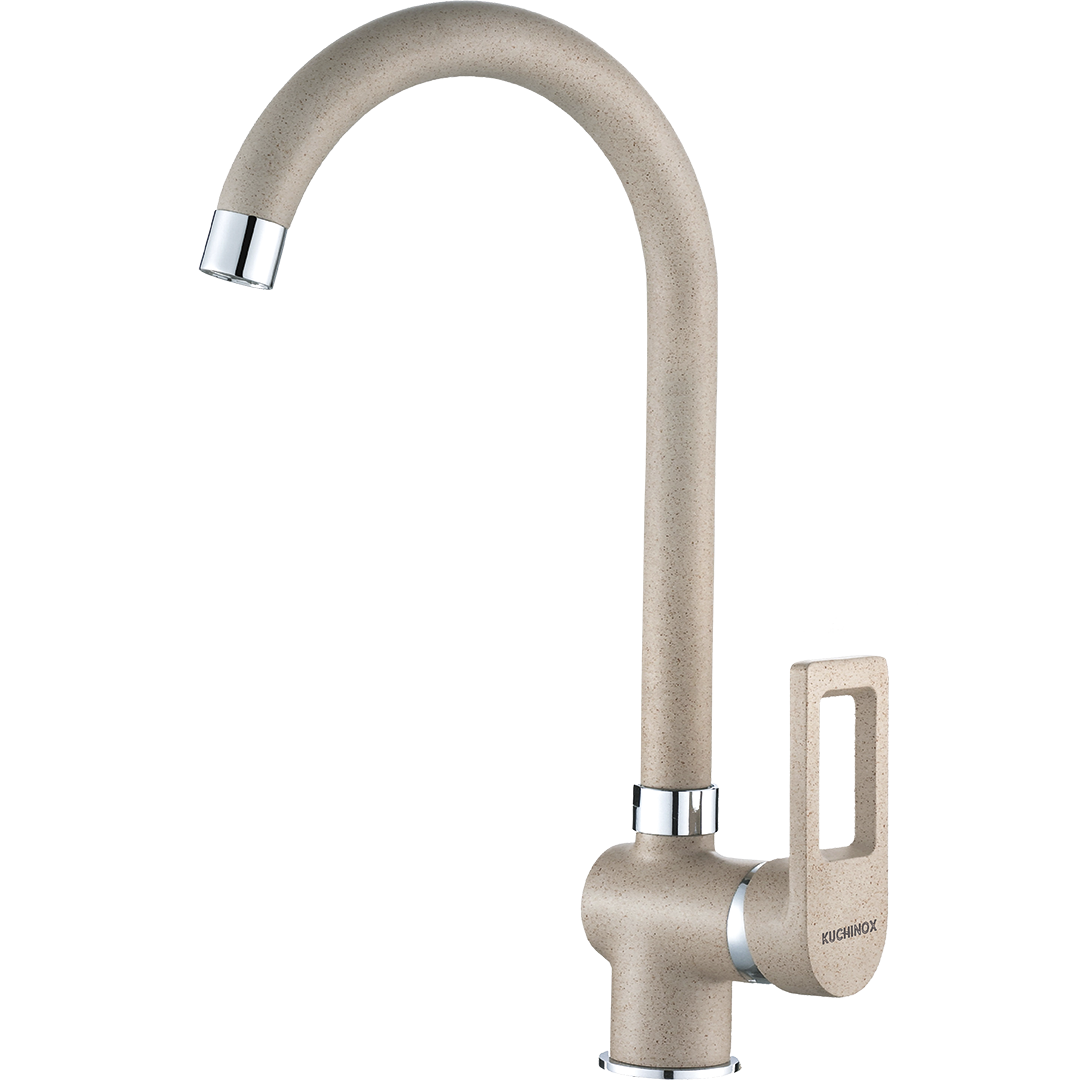 Baterie zlewozmywakowe KASJA wyposażone są w wysoką, ruchomą wylewkę w kształcie litery U, która pozwala na swobodne zmywanie naczyń. Cechą charakterystyczną serii jest dźwignia z prostokątnym otworem, który umożliwia wygodne korzystanie z baterii nawet zawilgoconymi rękoma. Baterie KASJA dostępne są w trzech wykończeniach: chromie oraz dających możliwość dopasowania do zlewozmywaków granitowych beżu i czerni.