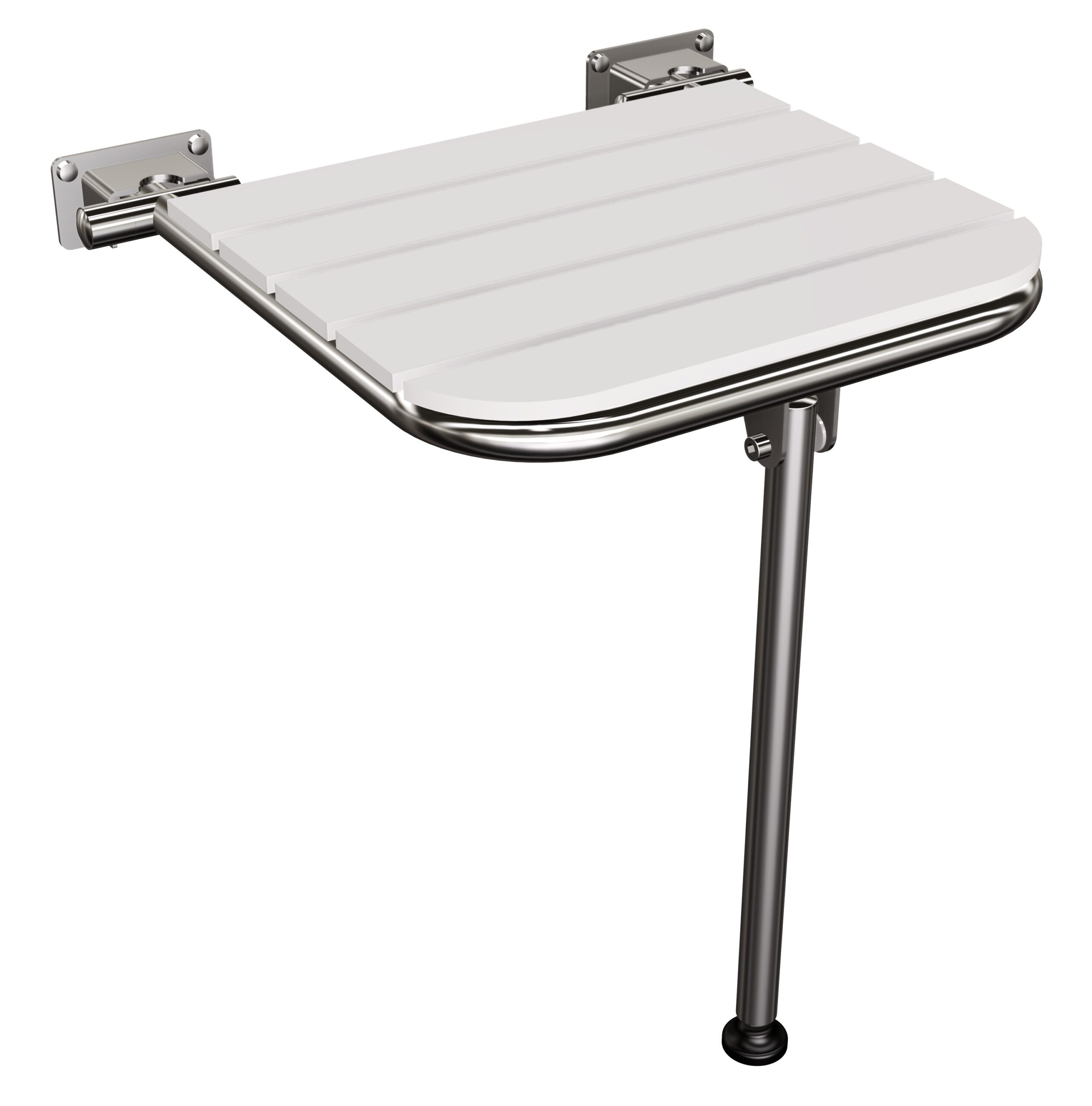 – Siedzisko wykonane z białej listwy PCV, która jest przyjemna oraz antypoślizgowa w użytkowaniu, a przede wszystkim bezpieczna, estetyczna i łatwa do utrzymania w czystości. – Dodatkowa składana podpora zwiększa bezpieczeństwo i odciąża uchwyty ścienne.