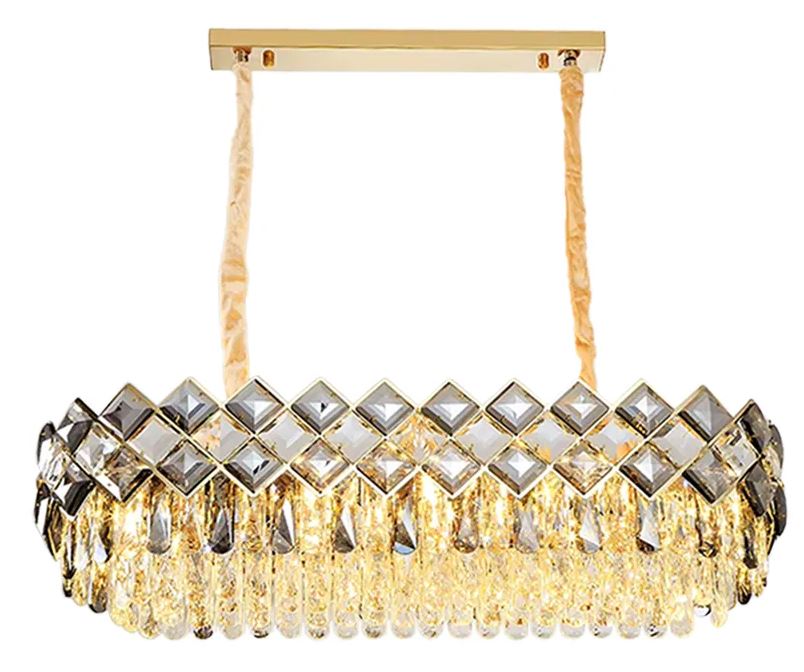 Złota lampa sufitowa wisząca z kryształkami to elegancki dodatek do każdego wnętrza. Jej połyskujące złote wykończenie w połączeniu z kaskadowo ułożonymi transparentnymi kryształkami tworzy efektowną grę światła, dodając przestrzeni blasku i wyjątkowego charakteru. Konstrukcja wykonana jest z metalu, a dekoracyjne kryształki pięknie rozpraszają światło, tworząc przyjemną atmosferę. Lampa przeznaczona jest do samodzielnego montażu i nie zawiera w zestawie żarówek (8 x E14).