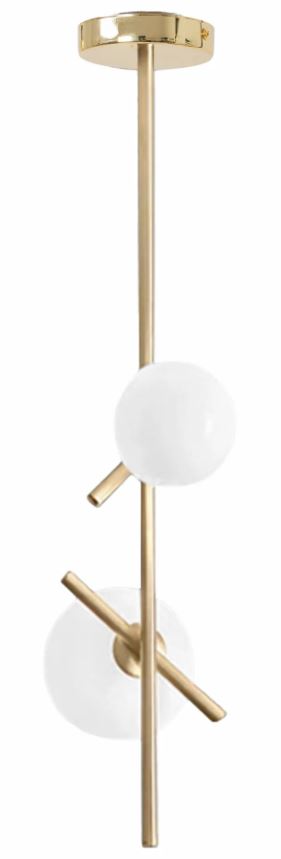 Ta elegancka lampa wisząca to połączenie nowoczesnego stylu i subtelnego designu. Wykonana z wysokiej jakości metalu w złotym wykończeniu oraz mlecznego szkła, wprowadza do wnętrza luksusowy i minimalistyczny akcent.