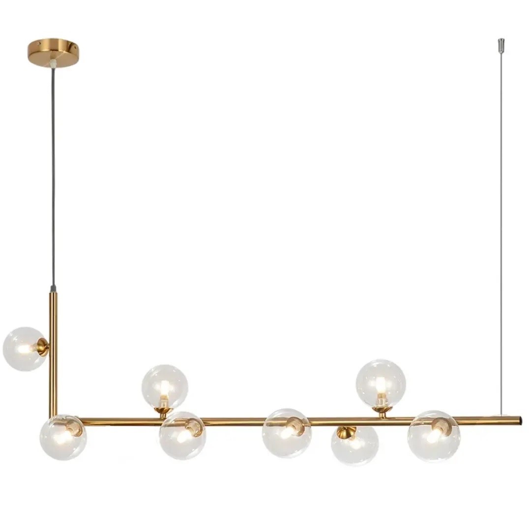Lampy zostały wykonane w całości z metalu wraz z maskownica przy suficie. Lampa posiada gwint przeznaczony do żarówki G9. Długość kabla można dopasować odpowiednio do pomieszczenia lub aranżacji. Cechą charakterystyczną dla lampy są podwójne szklane klosze. Wewnętrzna część jest półprzezroczysta, dzięki czemu światło lamp jest przyjemne w odbiorze.