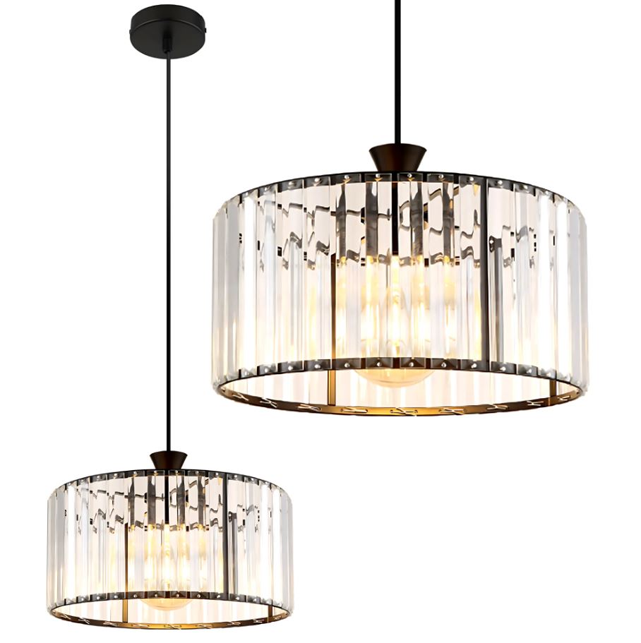 Nowoczesna lampa wisząca o średnicy 30 cm to doskonałe rozwiązanie dla miłośników stylu loft i modern. Jej czarny stelaż, kabel i maskownica tworzą spójną całość, a transparentny klosz złożony z pionowych, przezroczystych elementów z tworzywa nadaje wnętrzu lekkości i elegancji.