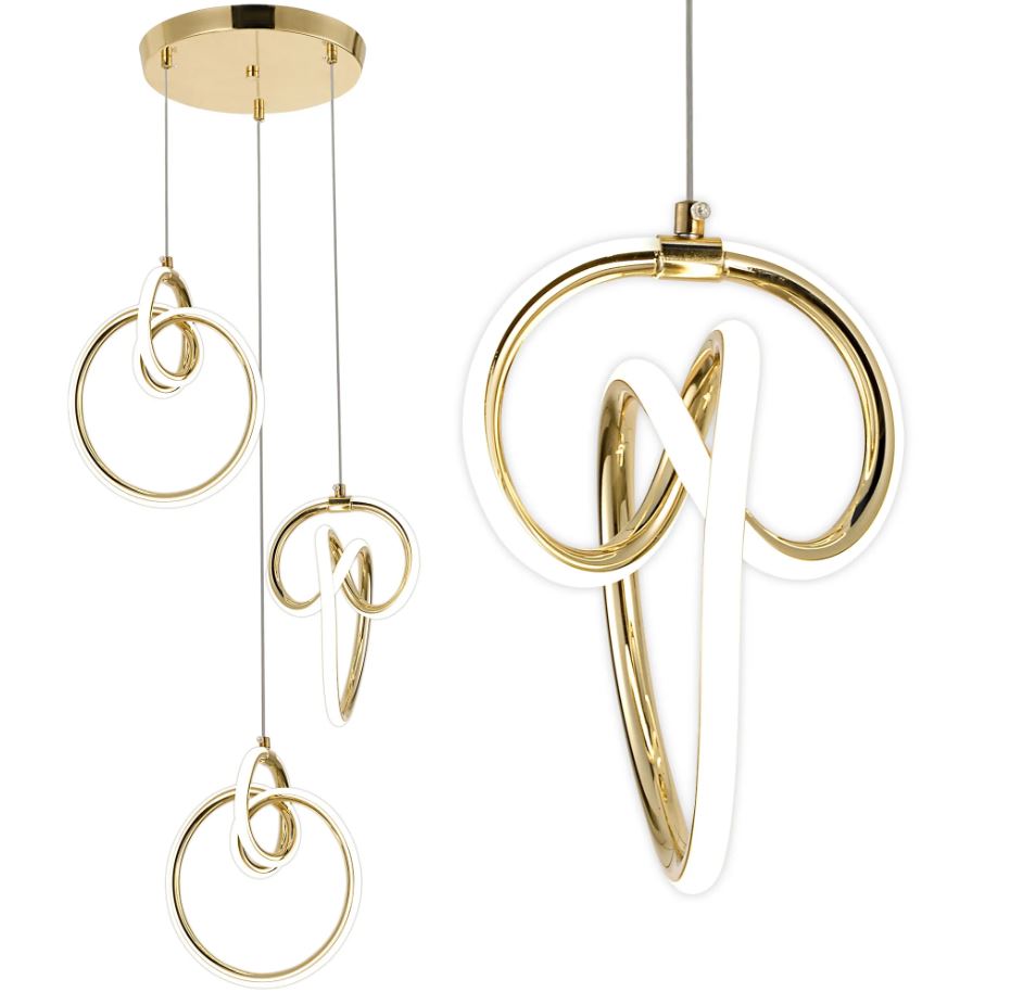 Wykonana z wysokiej jakości tworzywa sztucznego i metalu, oprawa zachwyca nie tylko formą, ale również lekkością i trwałością. Precyzyjne wykończenie zapewnia estetyczny wygląd oraz odporność na codzienne użytkowanie. Dzięki konstrukcji z trzema zawieszonymi elementami lampa świetnie sprawdzi się jako główne oświetlenie nad stołem w jadalni, w przestronnym salonie lub nowoczesnym hallu. To również doskonały wybór do prestiżowych wnętrz komercyjnych – showroomów, butików czy hoteli.
