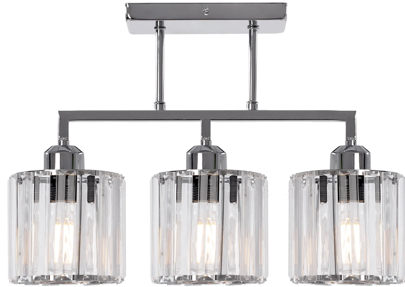 Lampa wykonana jest z metalu i szkła. Chromowany metal nadaje lampie wyjątkowego klimatu, który wpasuje się w niemal każdą aranżację. Prosty styl sprawia, że lampa pasować będzie do każdego pomieszczenia – zarówno do kuchni, salonu czy przedpokoju. Lampa posiada dwa klosze, stelaż, oraz metalową maskownica przy suficie. Wyposażona została w najpopularniejszy gwint przeznaczony do żarówki E27.