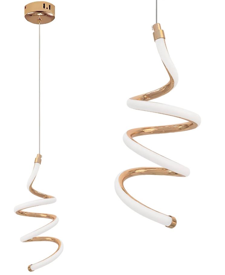 LHJ096-1CP to kwintesencja nowoczesnego designu – spiralne ramię w eleganckim złotym wykończeniu przyciąga uwagę z każdej perspektywy, a zintegrowany moduł led 3000 K wypełnia przestrzeń przyjemnym, ciepłym blaskiem.