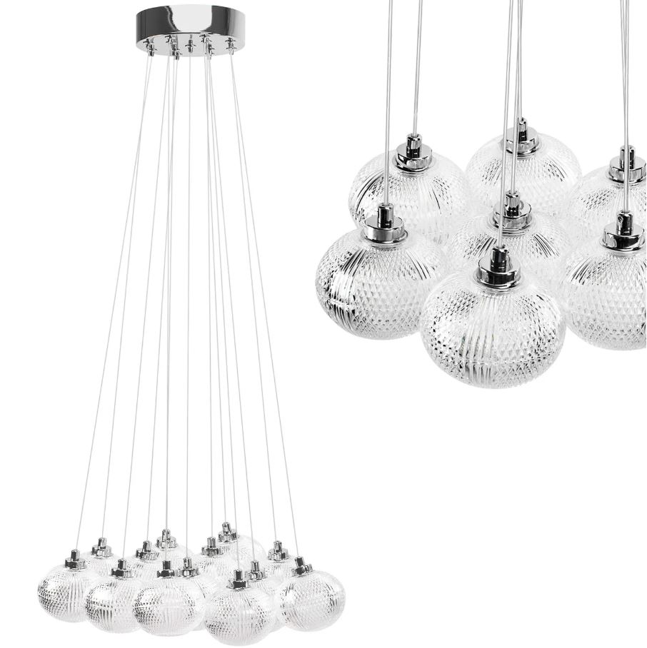 Ta elegancka lampa wisząca z trzynastoma dekoracyjnymi kloszami z akrylu to połączenie nowoczesnego designu z klasyczną estetyką. Transparentne, efektownie zdobione klosze pięknie rozpraszają światło, tworząc wyjątkową atmosferę w każdym wnętrzu. Lampa doskonale sprawdzi się jako centralny element aranżacyjny w salonie, jadalni, nad stołem lub w wysokim holu. Przewody można regulować pod względem długości, co pozwala na idealne dopasowanie wysokości zawieszenia do indywidualnych potrzeb pomieszczenia. Chromowane detale dodają lampie nowoczesnego charakteru, a możliwość zastosowania energooszczędnych żarówek G9 sprawia, że jest ona nie tylko stylowa, ale również praktyczna.