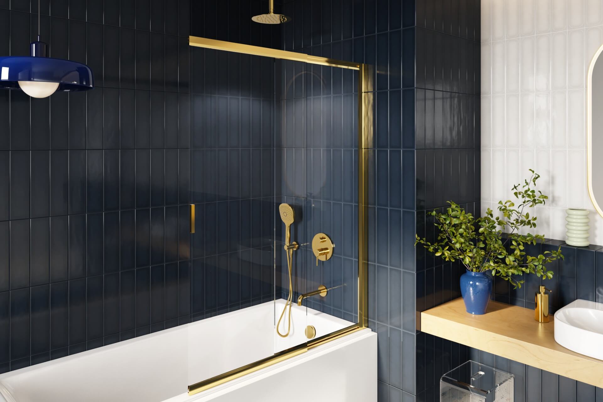 Zastosowany unoszony zawias z zakresem ruchu 180° zapewnia komfortowe składanie i rozkładanie parawanu – można go całkowicie złożyć do ściany. Montaż jest uniwersalny: możliwy zarówno po lewej, jak i po prawej stronie. Produkt dostępny w wersjach kolorystycznych: chrom, czarny mat, złoty połysk oraz w modnych wariantach szczotkowanych: złotym, miedzianym i grafitowym.