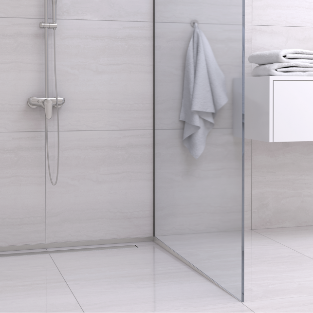 Według normy spadek dla czystej wody powinien wynosić 1%. Lista BALNEO® wymusza 1,5% spadu co jest idealnym rozwiązaniem dla wody z mydłem. Takie nachylenie jest wystarczające, aby skutecznie odprowadzać wodę z kabiny prysznicowej do rury odpływowej, minimalizując ryzyko zalewania łazienki i zapewniając bezpieczeństwo użytkowników. Dzięki listwie, spadek pod prysznicem jest równomiernie rozłożony, co pozwala na skuteczne działanie odpływu.