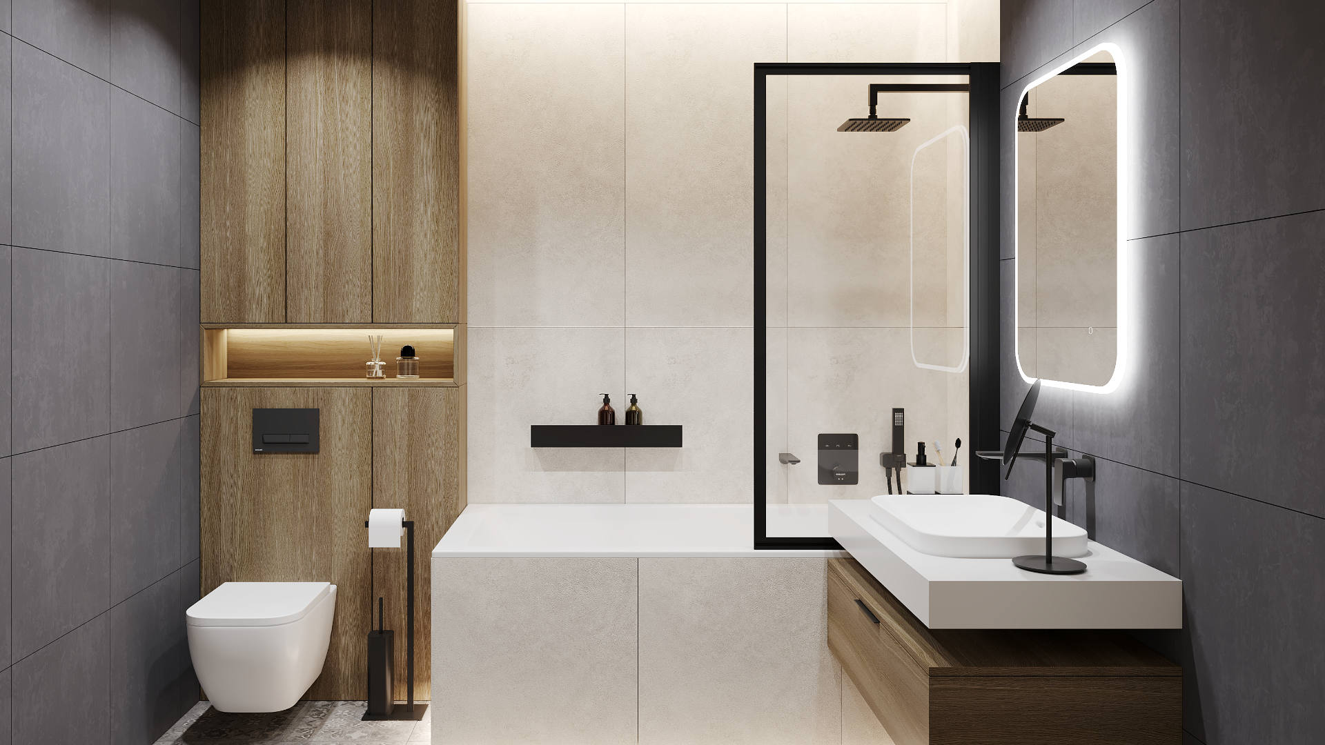 Prostokątne lustro 80 x 60 cm wyposażone jest w zintegrowane oświetlenie LED z płynną zmianą barwy światła w zakresie 3000–6000 K. Użytkownik może dostosować zarówno temperaturę barwową, jak i poziom intensywności światła, tworząc optymalne warunki do codziennej pielęgnacji czy wykonywania makijażu. Oświetlenie ukryte zostało pod akrylową, przezroczystą osłoną, która zapewnia równomierne rozproszenie światła bez widocznych punktów diod LED, podkreślając elegancki charakter i dbałość o detale.