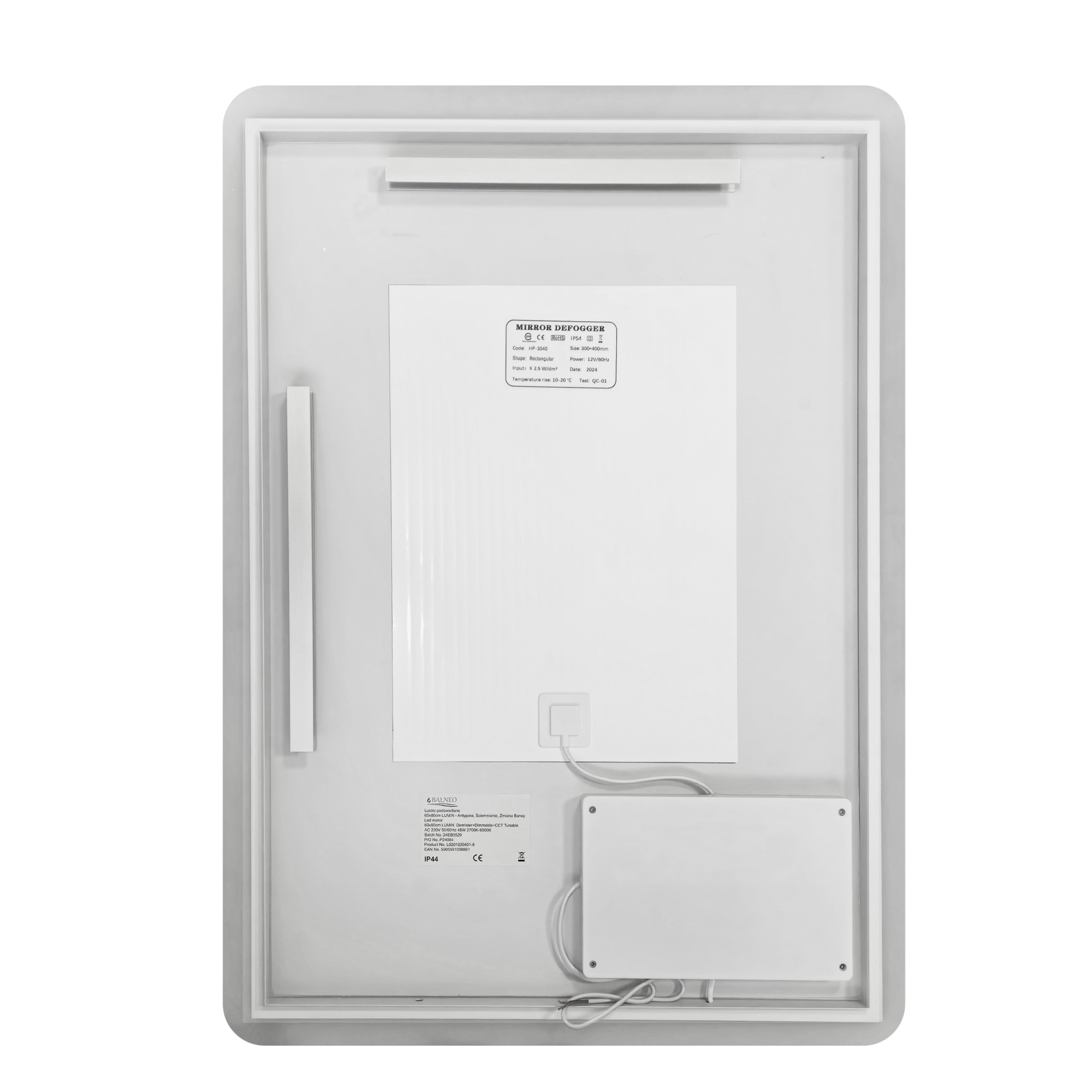 Lustro zostało wykonane z najwyższej jakości szkła, co zapewnia wieloletnią trwałość. Dodatkowe zabezpieczenia elektryczne chronią przed przepięciami i nadmiernym prądem.