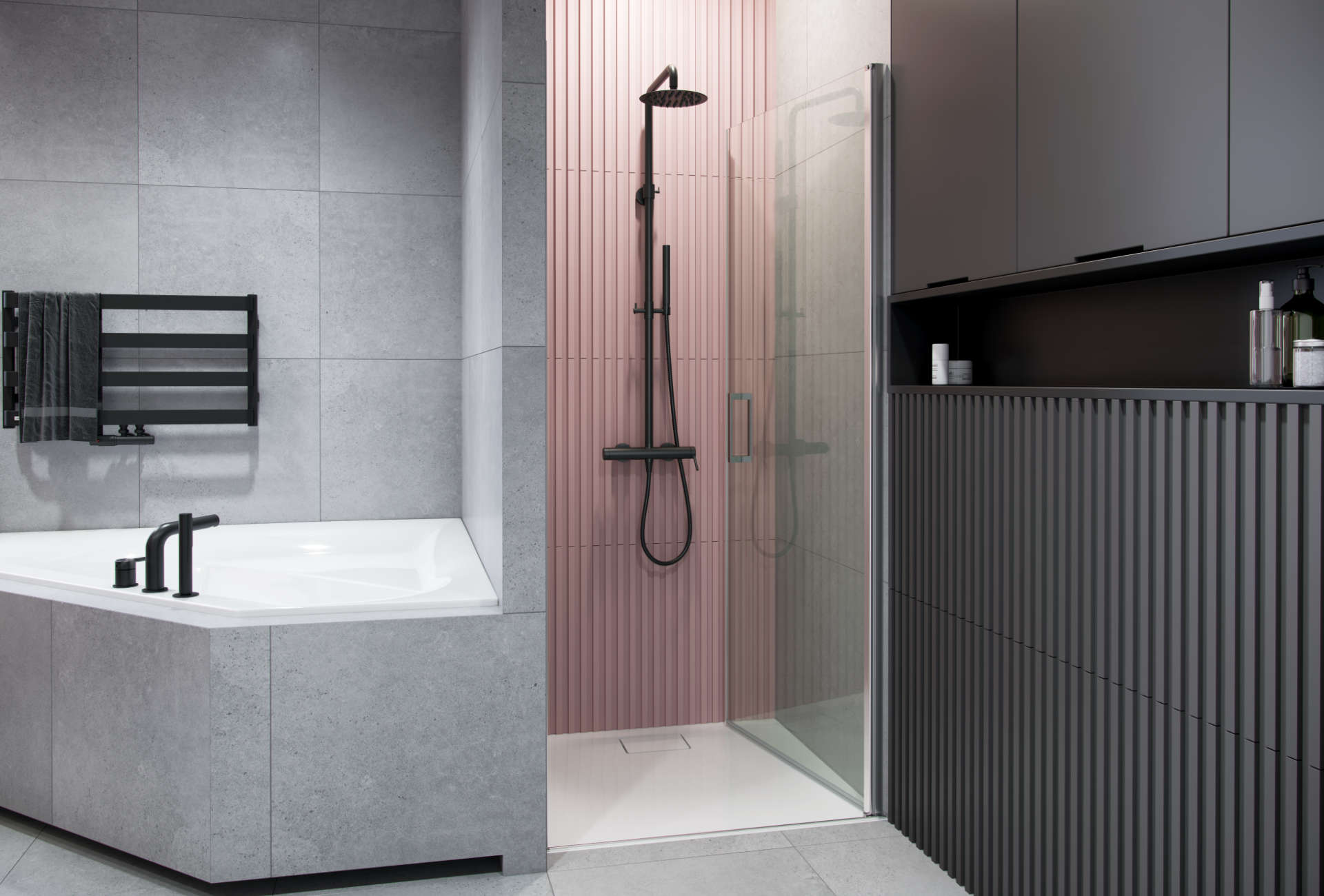 Do strefy prysznica polecamy brodziki serii Lavano, Arda, Zero lub Forma. Istnieje możliwość poszerzenia drzwi o 15mm za pomocą profili poszerzających Mazo. Montaż drzwi jest uniwersalny – prawy lub lewy. Produkt dostępny jest w rozmiarach 80 i 90 cm i wysokości 195 cm.