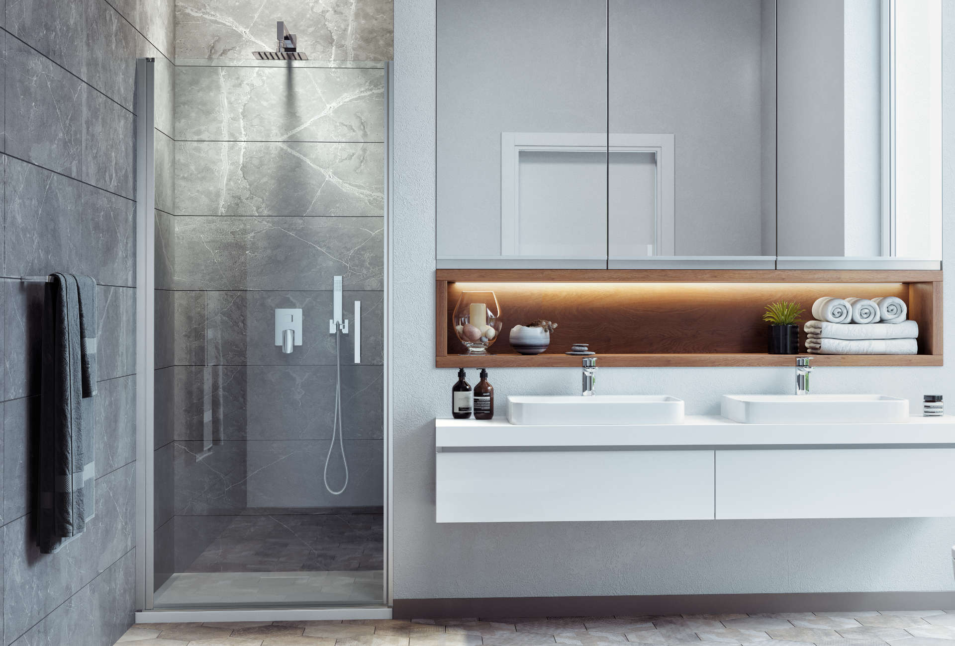 Drzwi wahadłowe Mazo są funkcjonalnym rozwiązaniem do zabudowania wnęki lub połączenia ze ścianką boczną do kabiny narożnej. Pojedyncze drzwi wahadłowe uchylają się do wewnątrz i na zewnątrz. Ich smukłe, unoszone zawiasy umożliwiają ruch w zakresie 180°.