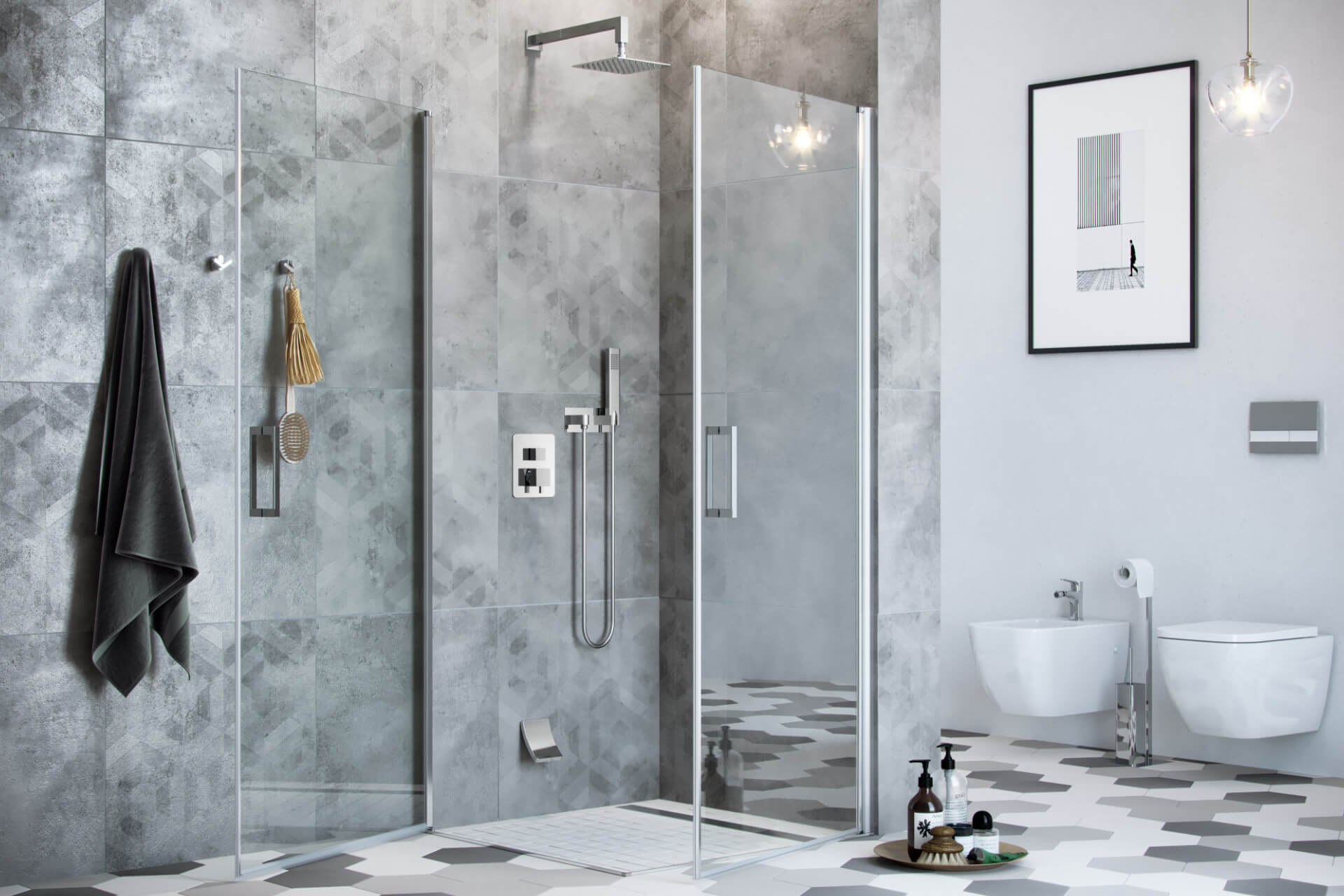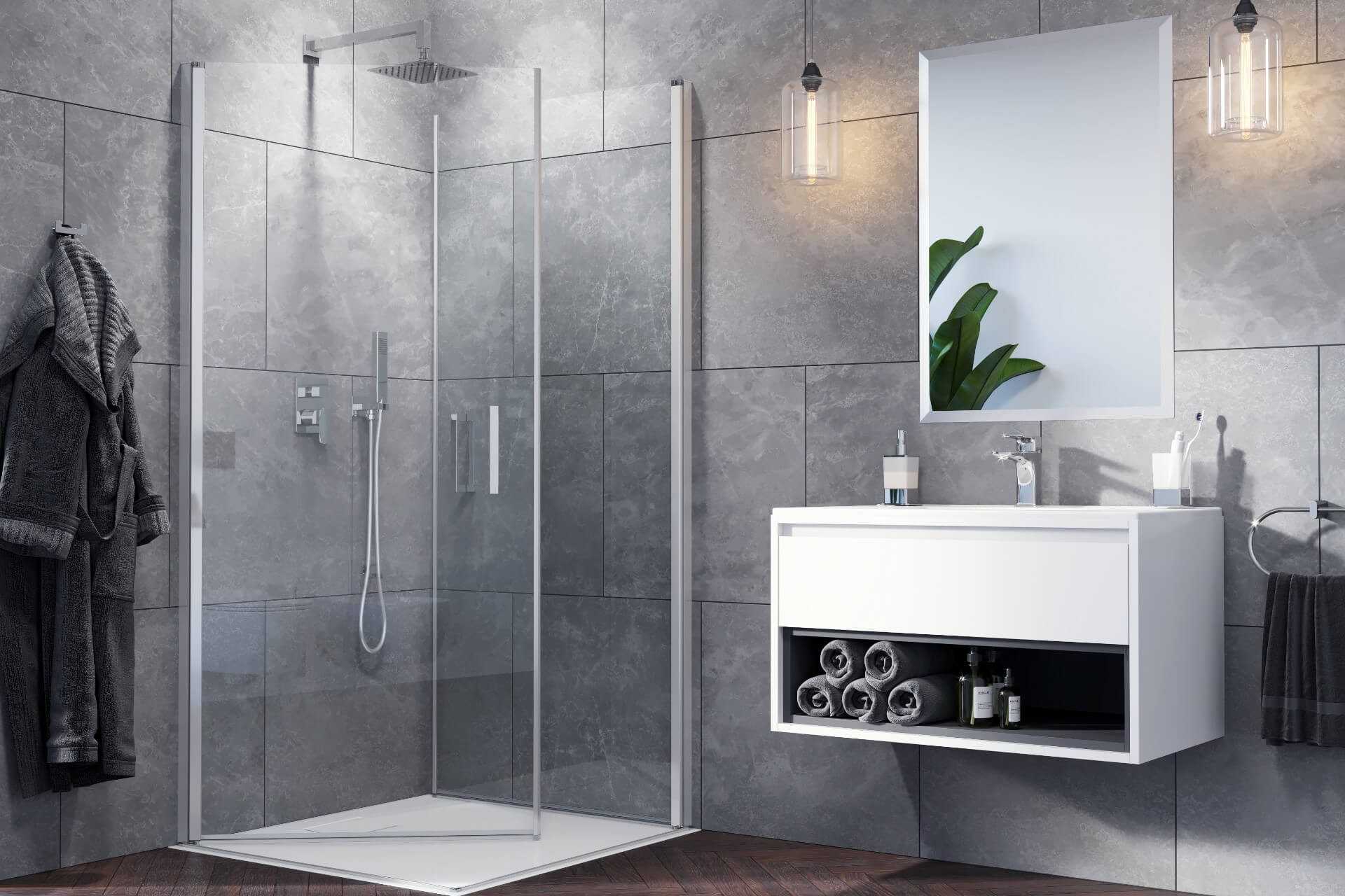 Dużą zaletą kabiny są wygodne podwójne drzwi wahadłowe, które uchylają się do wewnątrz i na zewnątrz. Ich smukłe, unoszone zawiasy zapewniają możliwość obrotu o 180°. Konstrukcja kabiny zachwyca minimalistycznym designem, podkreślonym estetycznymi uchwytami ze stali nierdzewnej. W aluminiowych profilach zamontowano magnetyczne uszczelki, zapewniające doskonałą szczelność.