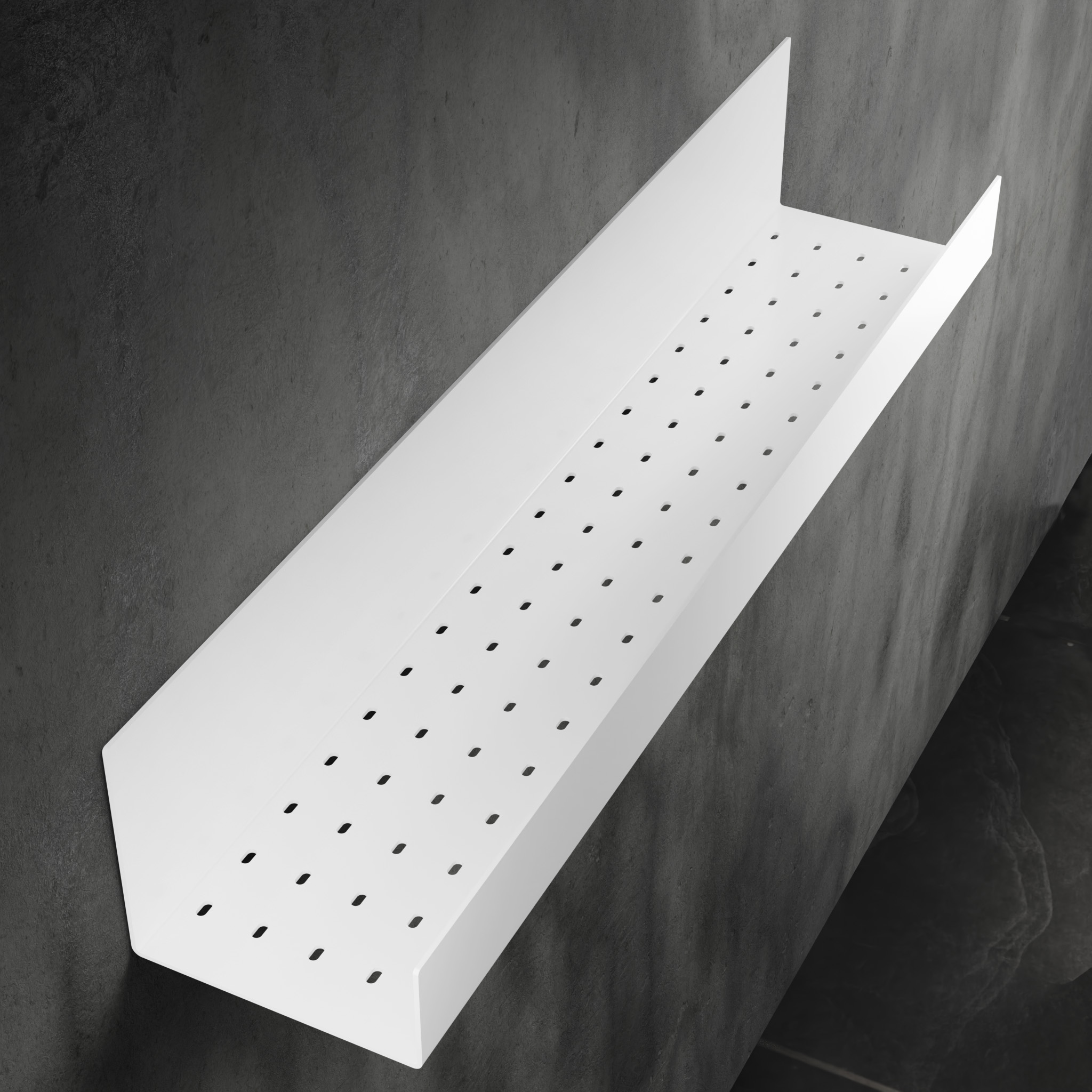 Półka została wyposażona w praktyczne otwory odpływowe, które zapobiegają gromadzeniu się wody. Dzięki nim powierzchnia pozostaje sucha i higieniczna, a kosmetyki i akcesoria są zawsze bezpieczne w codziennym użytkowaniu.