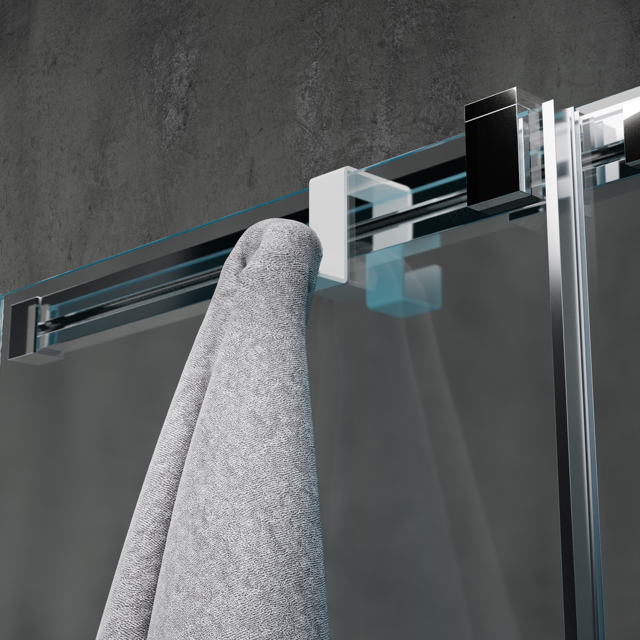 Hak łazienkowy został zaprojektowany z myślą o wygodnym użytkowaniu prysznica. Montuje się go bezpośrednio na szybie kabiny, dzięki czemu nie wymaga wiercenia ani dodatkowych narzędzi.