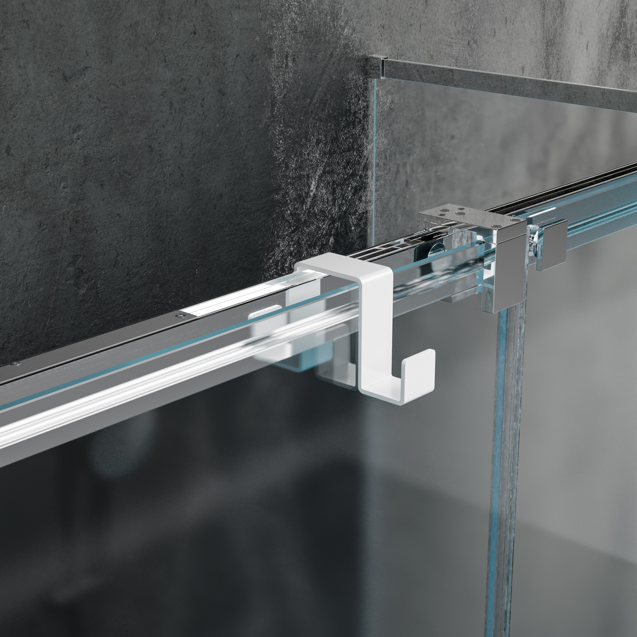 Specjalnie zaprojektowana konstrukcja pewnie trzyma się na szklanej tafli, nie zsuwajac się i nie rysując powierzchni. Hak pasuje do standardowych szyb prysznicowych, zapewniając szybki i bezpieczny montaż.