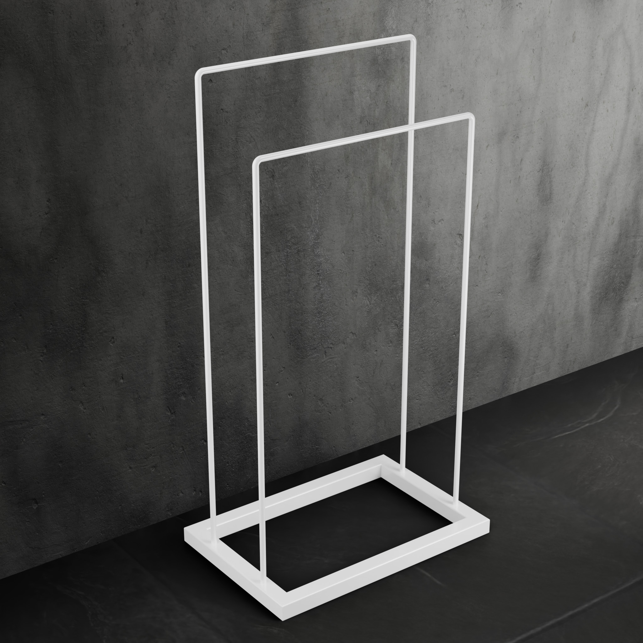 Stojak na ręczniki LUVRO to eleganckie połączenie prostoty formy i praktyczności. Jego geometryczna konstrukcja sprawia, że doskonale wpisuje się w nowoczesne aranżacje łazienek, dodając im porządku i harmonii.