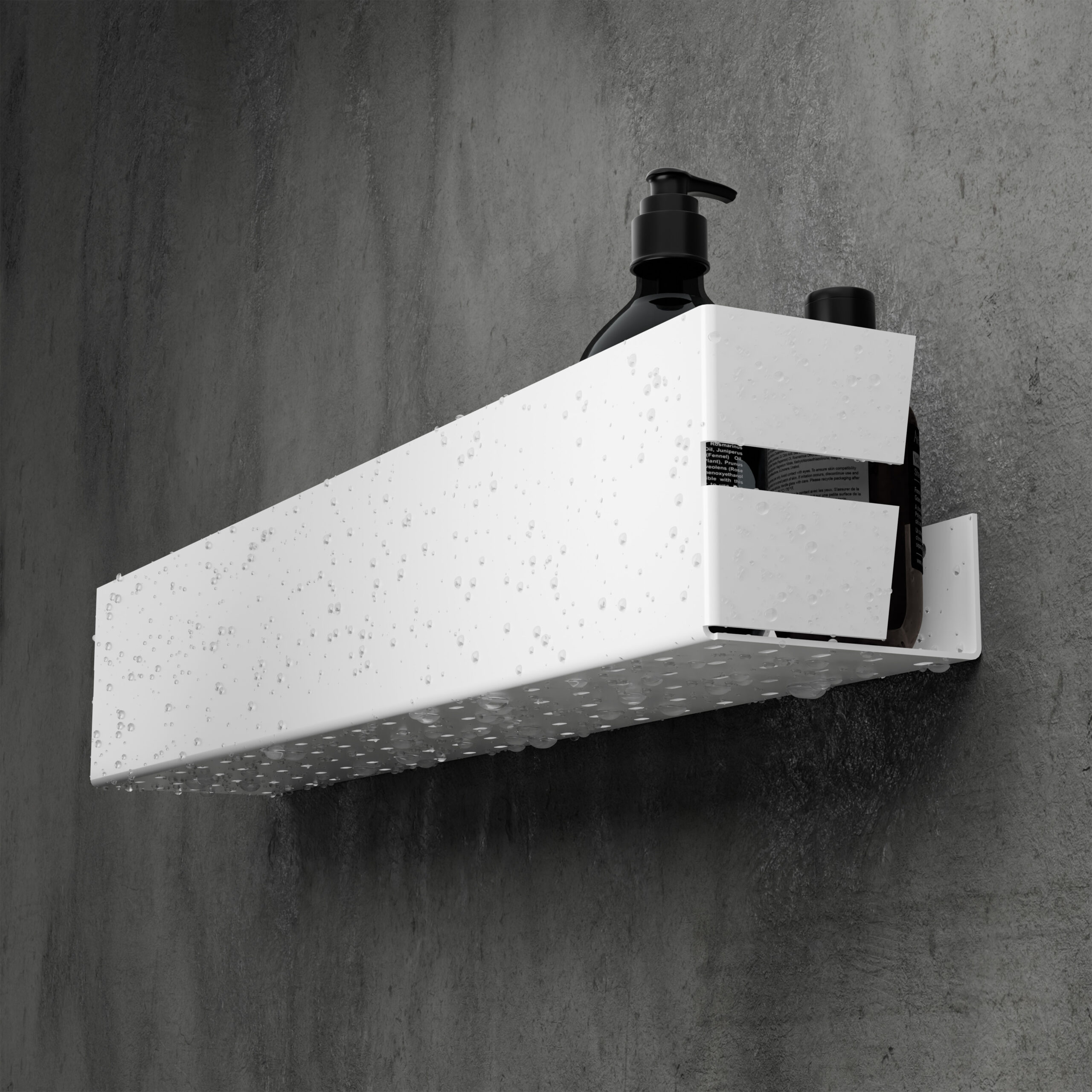 NIX została wyposażona w starannie zaprojektowane otwory odpływowe, które skutecznie zapobiegają gromadzeniu się wody. Dzięki temu powierzchnia półki pozostaje sucha i higieniczna, a przechowywane kosmetyki czy akcesoria są zawsze w bezpiecznym miejscu.