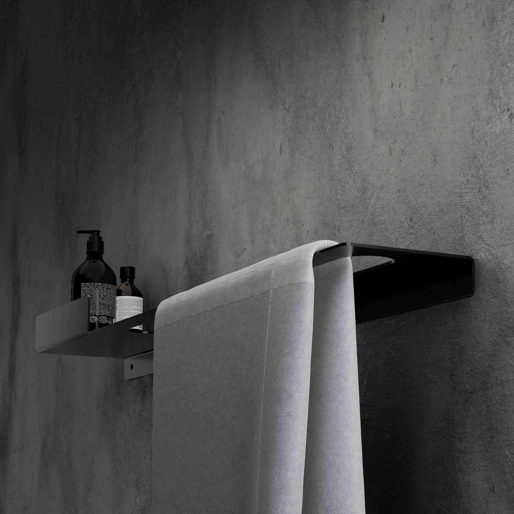 ORION to funkcjonalne połączenie półki i uchwytu na ręcznik. Taki układ świetnie sprawdzi się np. przy umywalce, gdzie możesz jednocześnie przechowywać najważniejsze kosmetyki i mieć ręcznik zawsze pod ręką. To wygodne i praktyczne rozwiązanie, które pozwala zaoszczędzić miejsce i utrzymać porządek w łazience.