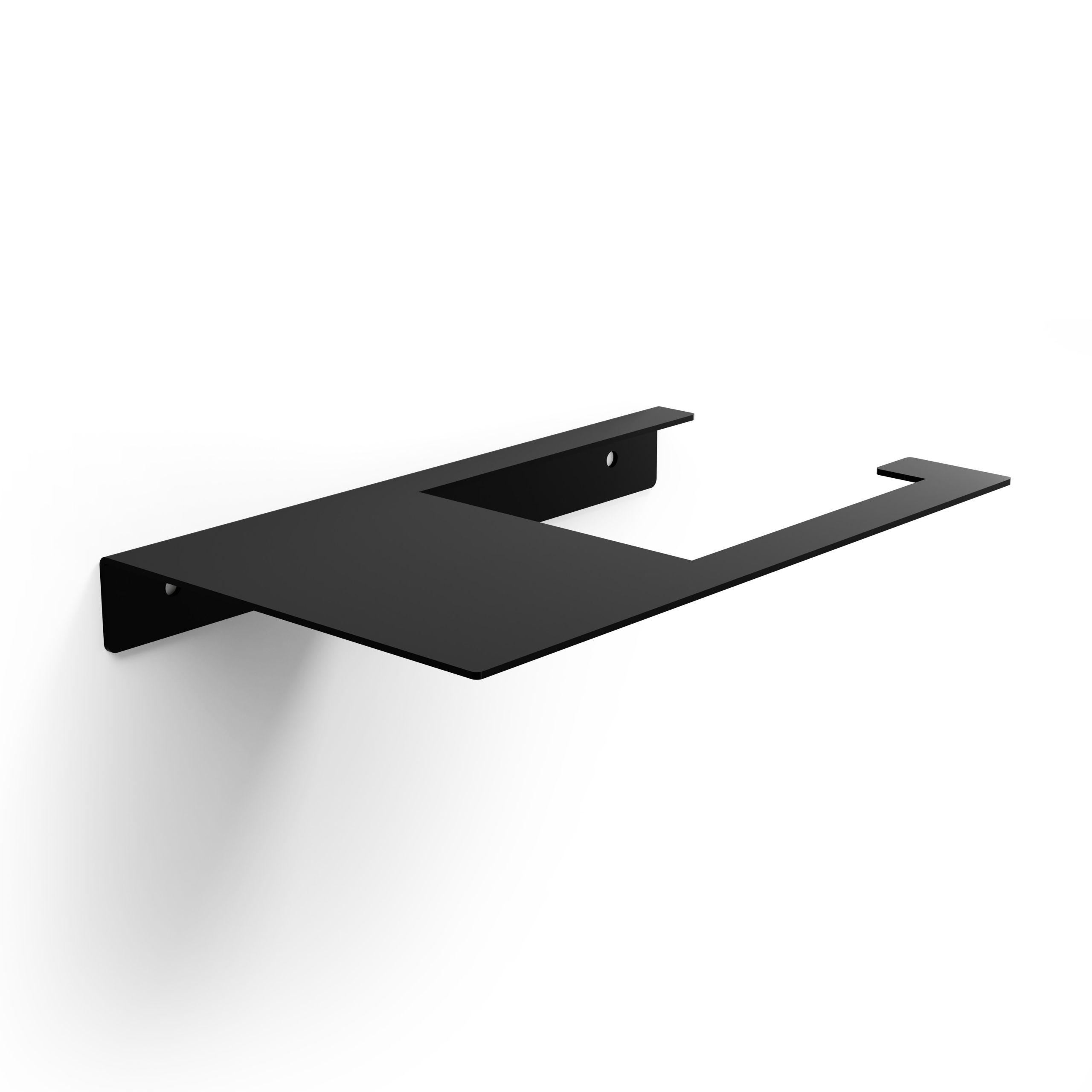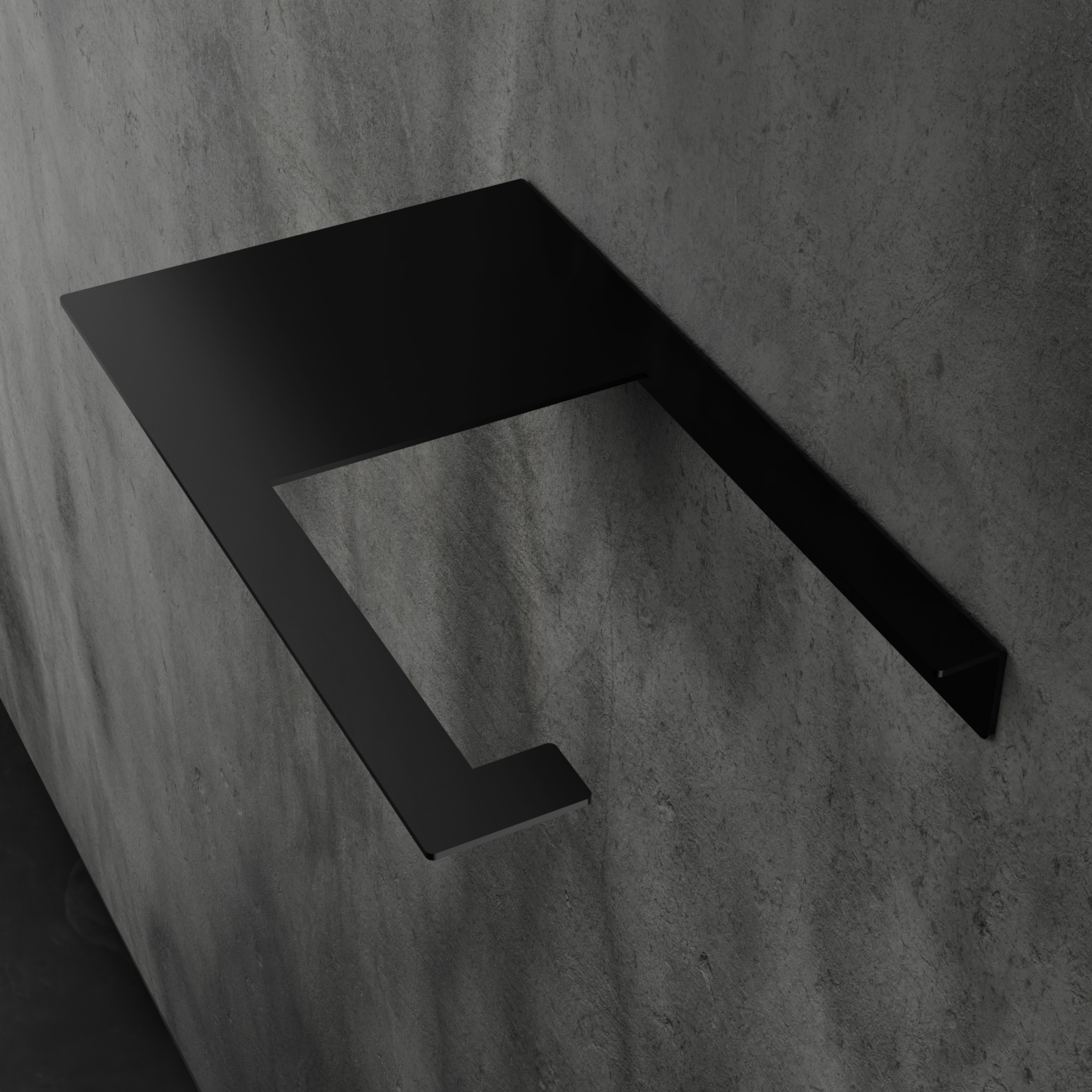 Minimalistyczny uchwyt, który łączy dwa ważne elementy: miejsce na rolkę i praktyczną półkę na to co chcesz mieć pod ręką (telefon, odświeżacz, chusteczki). Bez zbędnych ozdobników – czysta, ostra linia.