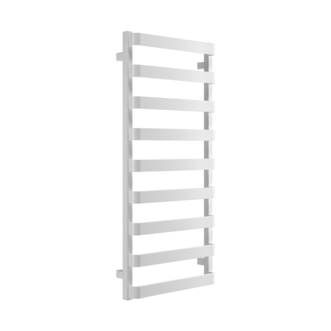 Grzejnik ma szerokie, płaskie profile ułożone w równej odległości od siebie, prostopadle do kolektorów. Dzięki charakterystycznemu wygięciu profili w kształcie litery C, uzyskujemy formę, która nie tylko prezentuje się elegancko, ale również zapewnia łatwą możliwość zawieszenia tekstyliów do wyschnięcia – idealną na przykład na ręczniki kąpielowe. Meteor sprawdzi się więc doskonale jako całoroczna suszarka na ręczniki, łącząc funkcję grzewczą z praktyczną.