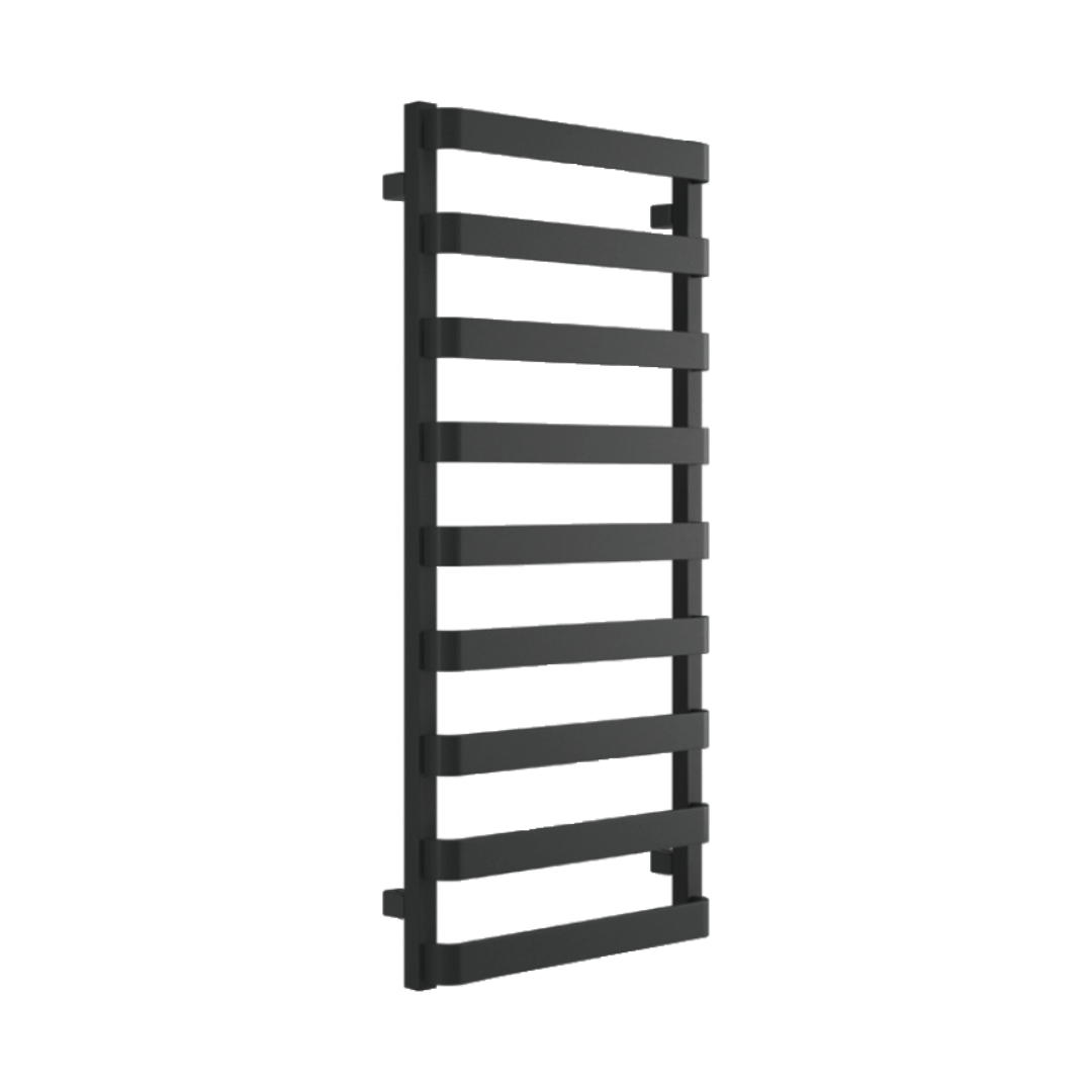 Grzejnik ma szerokie, płaskie profile ułożone w równej odległości od siebie, prostopadle do kolektorów. Dzięki charakterystycznemu wygięciu profili w kształcie litery C, uzyskujemy kształt zapewniający łatwą możliwość zawieszenia tekstyliów do wyschnięcia. Meteor sprawdzi się więc doskonale jako całoroczna suszarka na ręczniki.