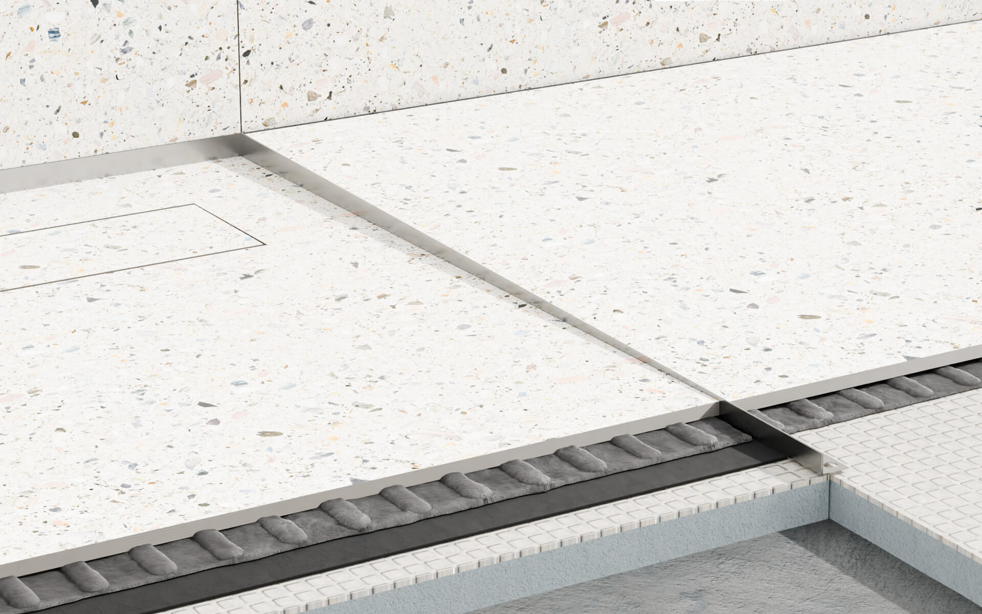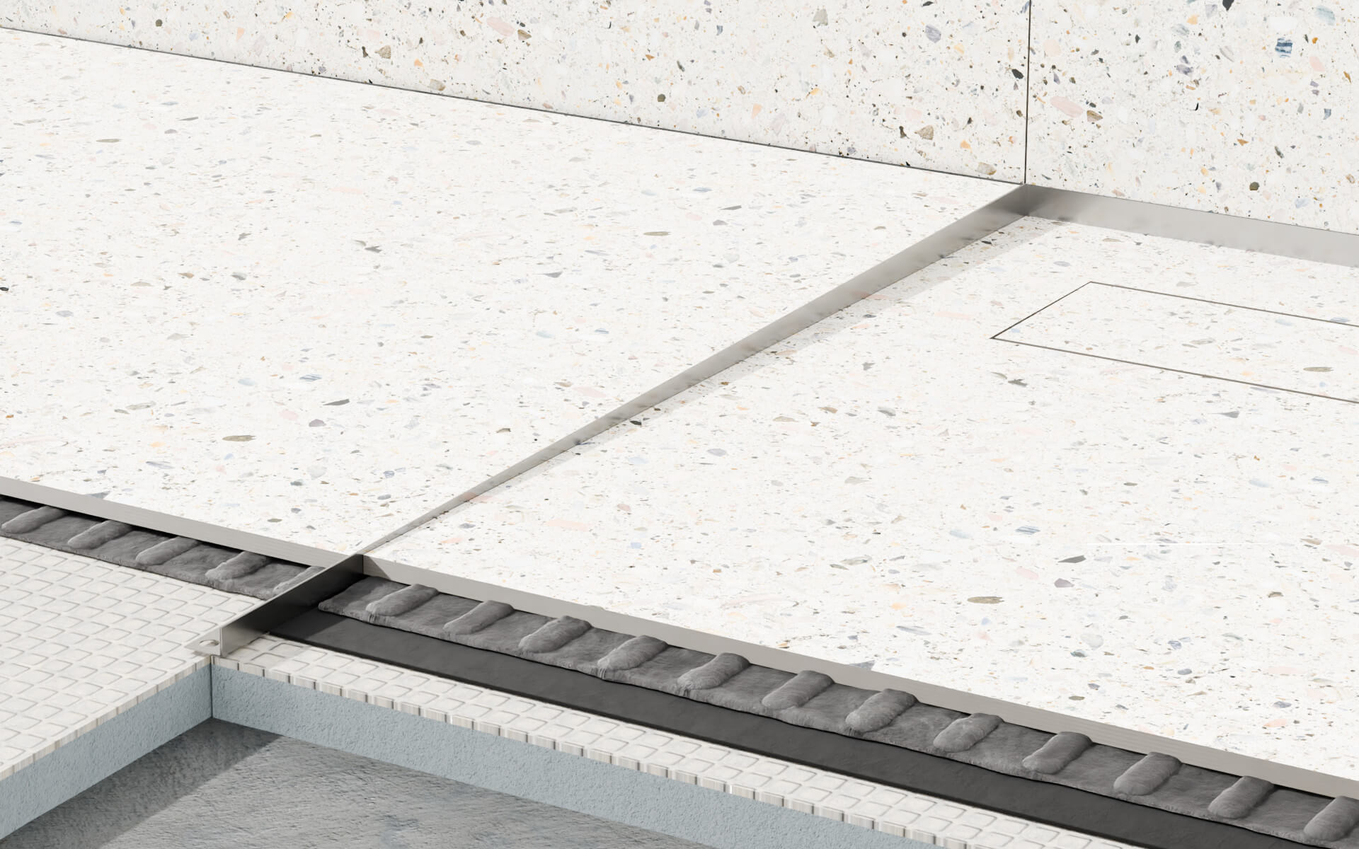 Profil spadkowy jest bardzo uniwersalnym rozwiązaniem. Może być stosowany z jednej lub z dwóch stron strefy prysznicowej – przy ściance kabiny (np. walk-in) oraz od strony ściany. Od frontu można wkleić również listwę czołową, która doskonale komponuje się z profilami bocznymi.